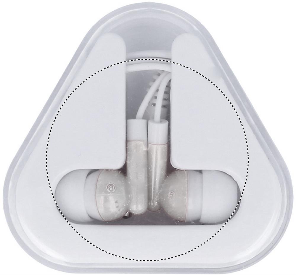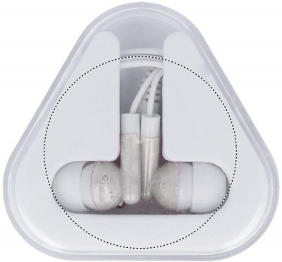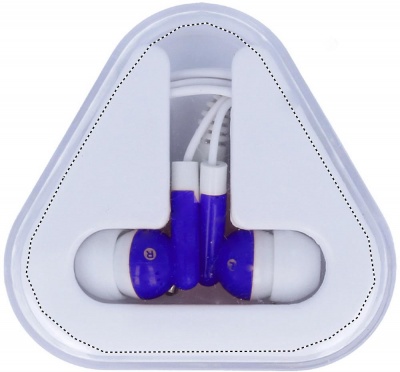 Earphones in PVC housed in a triangular PS case. Cable length 120 cm.