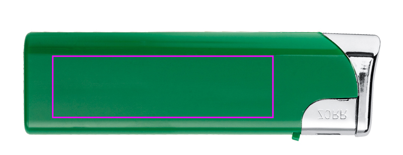 Refillable electronic lighter made of plastic. Of course, this model has the mandatory child safety lock. We print your logo on one side of the lighter.