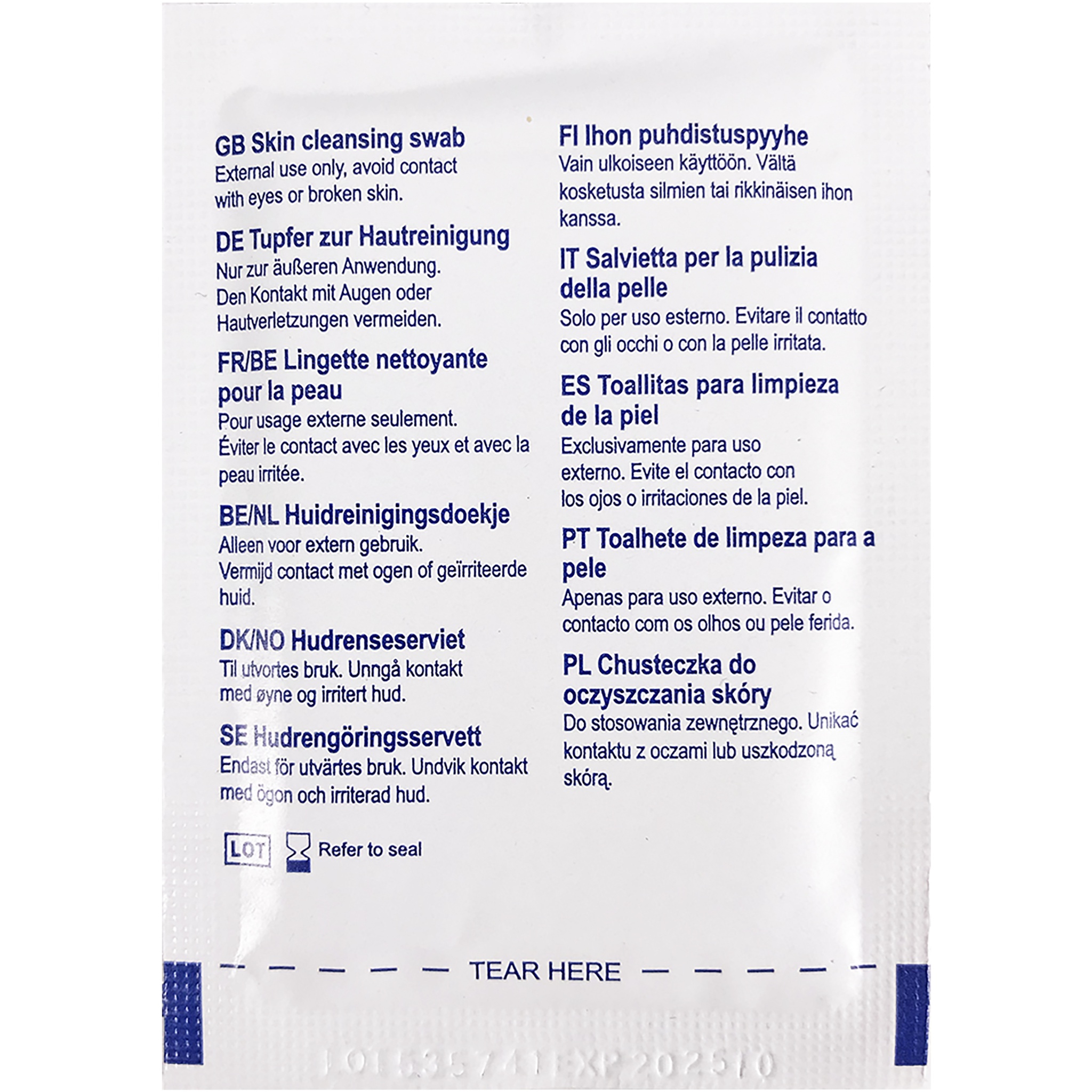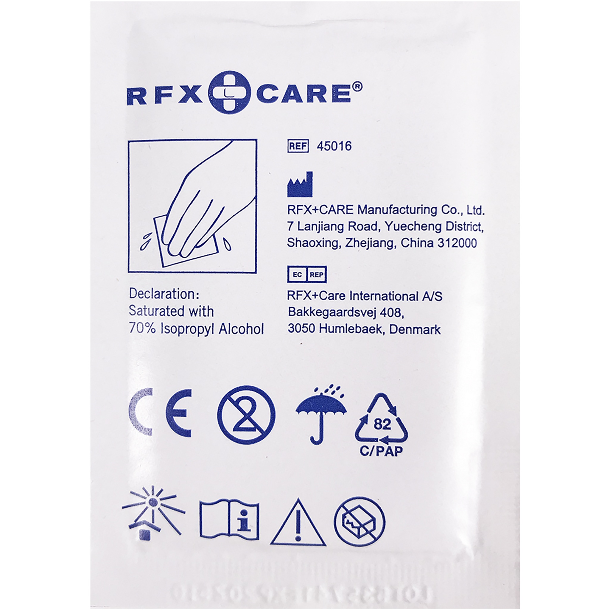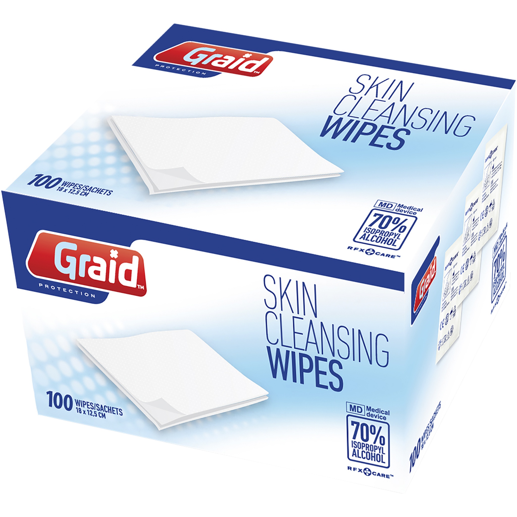Wet wipes for cleansing hands and surfaces of frequent use (smartphones, shopping carts, keyboards, etc.). Delivered in an aluminium covered package (8,5x6 cm) and unfolds to 18x12 cm for easy handling on any large surface. Contains 70% isopropyl alcohol which is cleansing and dries quickly after use. Delivered in a carton box of 15,5 x 12 x 8,5 cm.