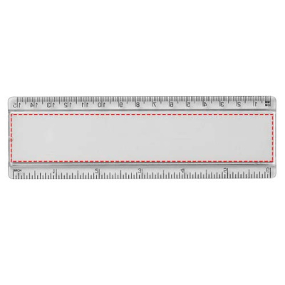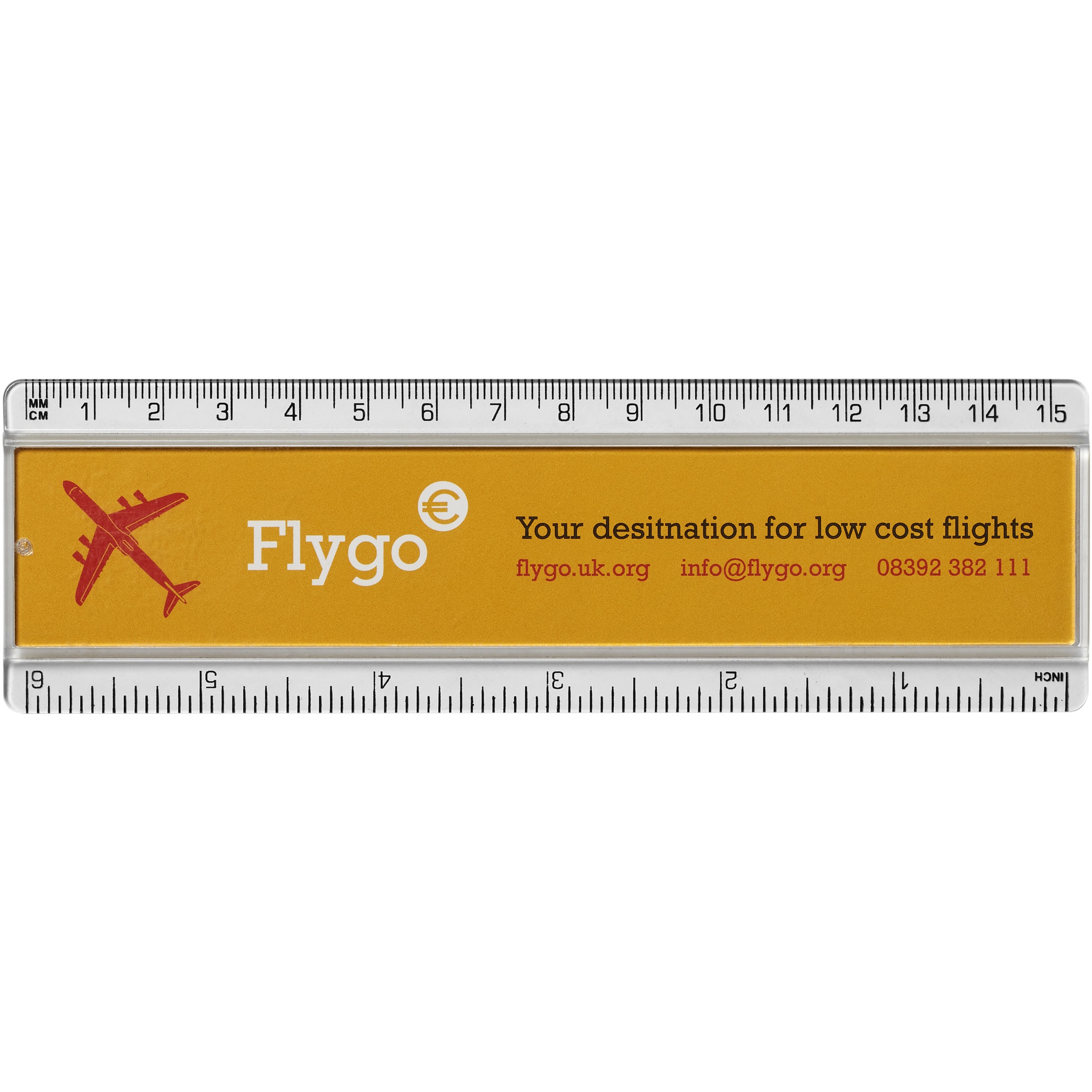 Paper insert plastic ruler with both markings in inches and centimetres.