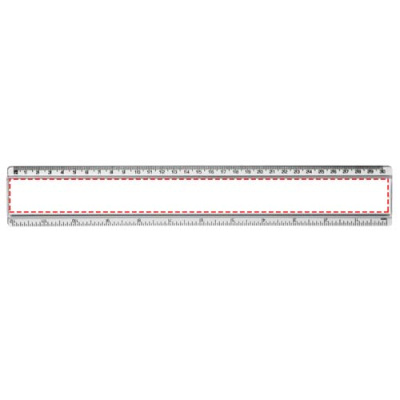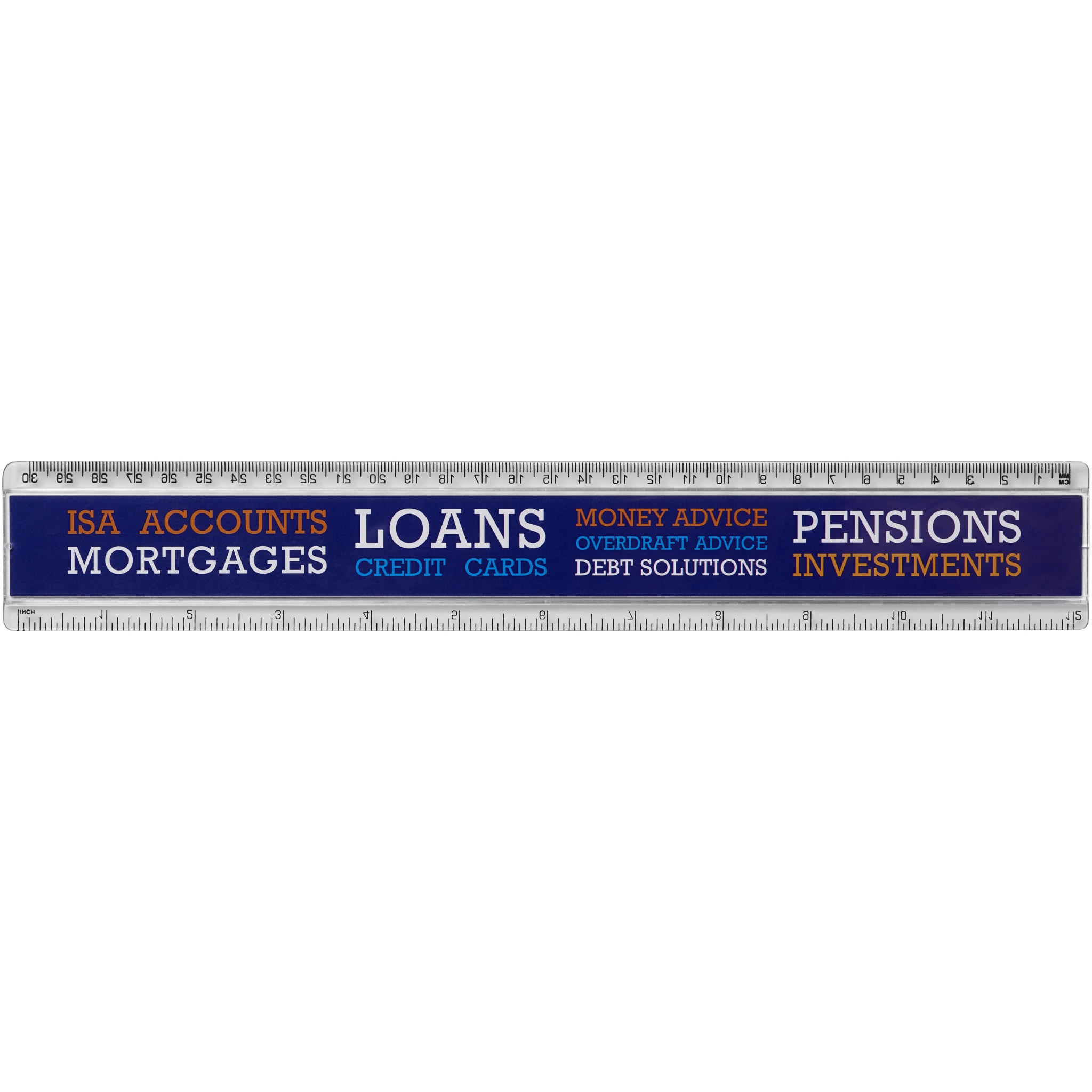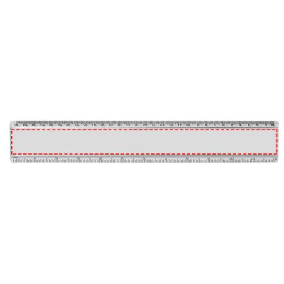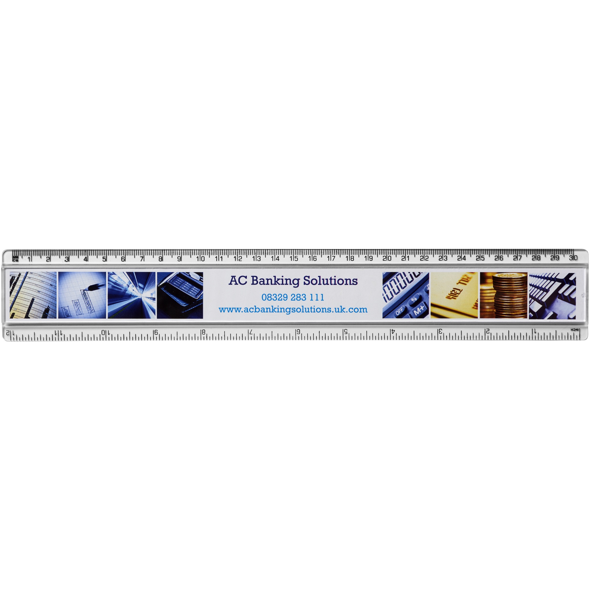 Paper insert plastic ruler with both markings in inches and centimetres.