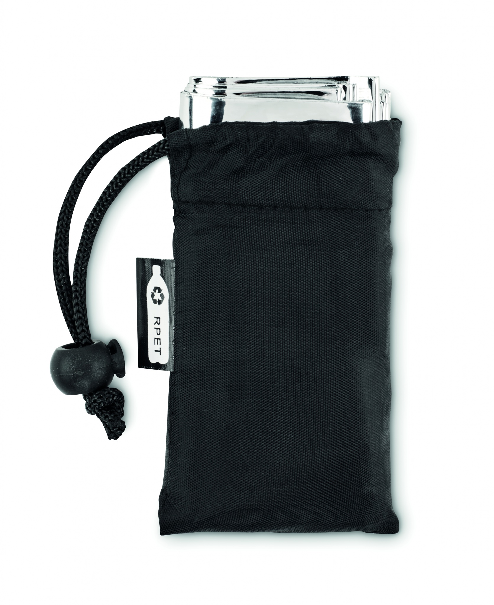 Emergency blanket in RPET polyester drawcord pouch. Size blanket: 130 x 210 cm.