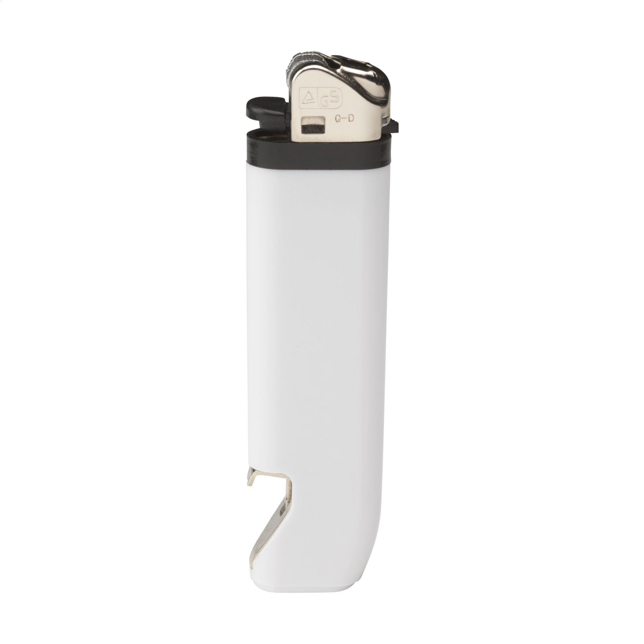 Quality lighter of the brand Flameclub® with a handy bottle opener and adjustable flame. Equipped with child lock. NEN-certified: EN13869. TÜV-certified and ISO-certified: ISO9994. Lighter are only supplied with print.