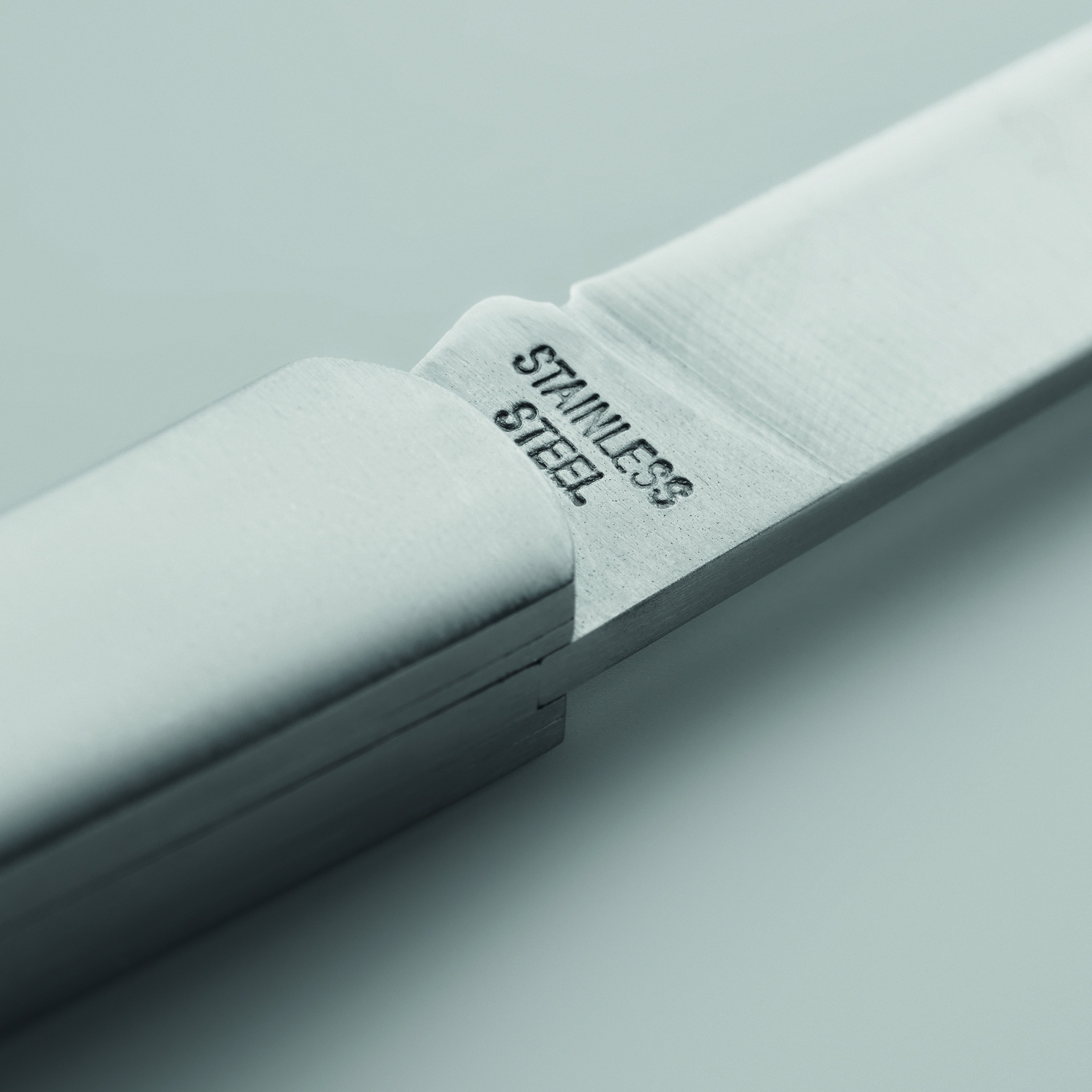 Stainless steel foldable knife in acacia wooden handle. Blade length: 6 cm.