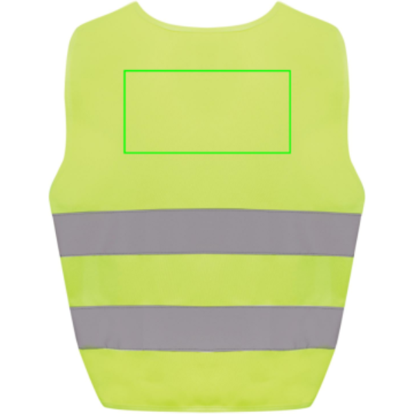 XS-sized high-visibility vest designed for children aged 3 to 6, with a height range of 90 to 140 cm. This vest features space for decoration on both the front and rear sides. It is equipped with hook and loop closures on the shoulders and at the bottom for added safety and easy donning. The elastic bands on the opposite side provide flexibility, allowing it to be comfortably worn over thick coats. This vest has rigorous testing and complies with EN 17353:2020 Type AB3. Furthermore, it adheres to the PPE guidelines specified in Regulation (EU) 2016/425 for Personal Protective Equipment Category II. Made with GRS certified recycled PET. Total recycled content: 55% based on total item weight. GRS certification ensures a completely certified supply chain of the recycled materials.