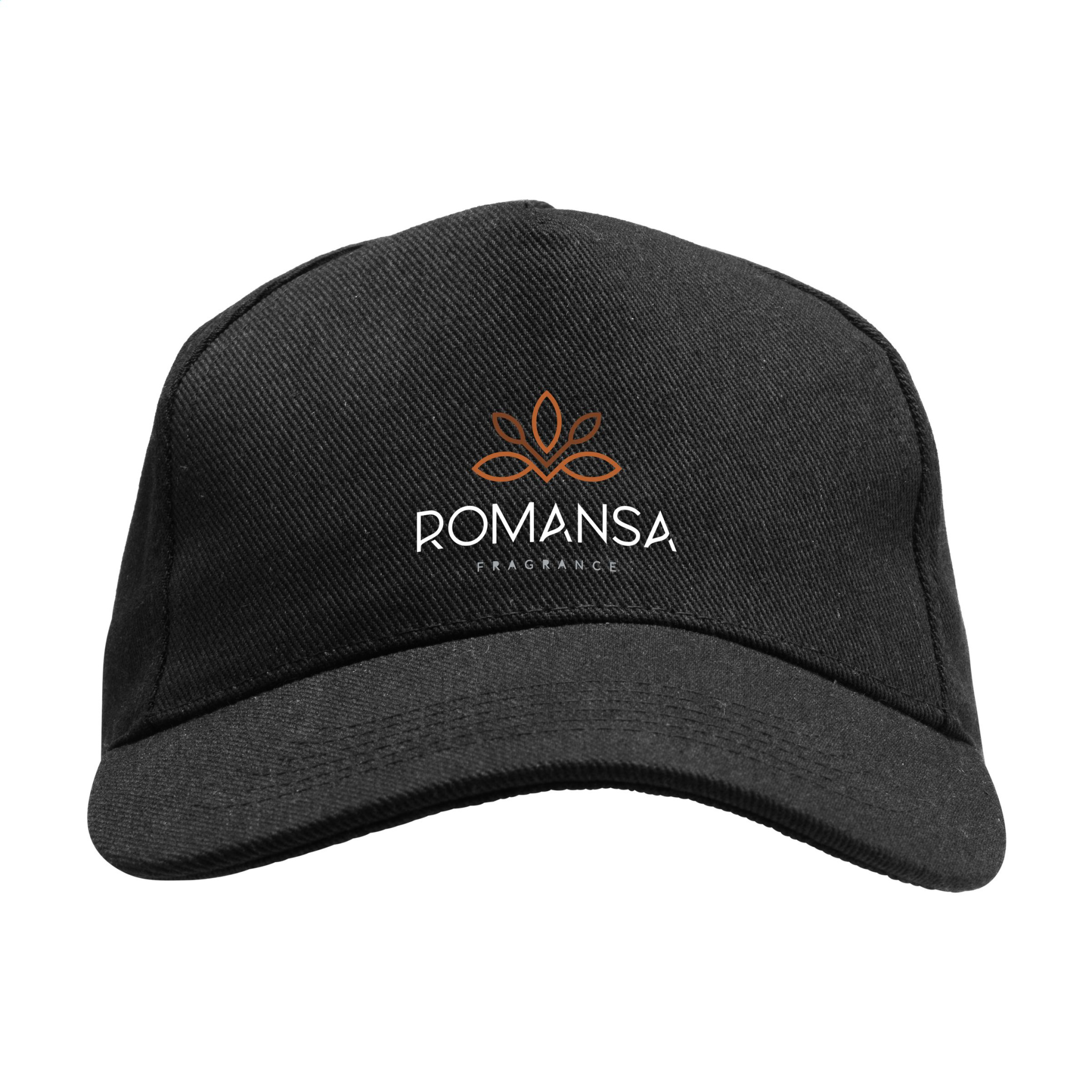 WoW! Comfortable cap made from extra heavy quality material: 60% recycled cotton and 40% recycled polyester. With a preformed peak and adjustable metal clip closure at the back, this 5-panel cap has a curved visor and embroidered eyelets for ventilation.