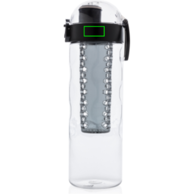 Add some healthy fruit flavours to your water. This design bottle with honeycomb details offers convenient single-handed drinking. Push the button and the lid flips open. There’s a special locking mechanism to keep users from accidentally pressing the button. Including carrying handle. This infuser bottle is made of a durable and innovative tritan material . Odourless and 100% BPA-free. Content 700ml. Registered design®