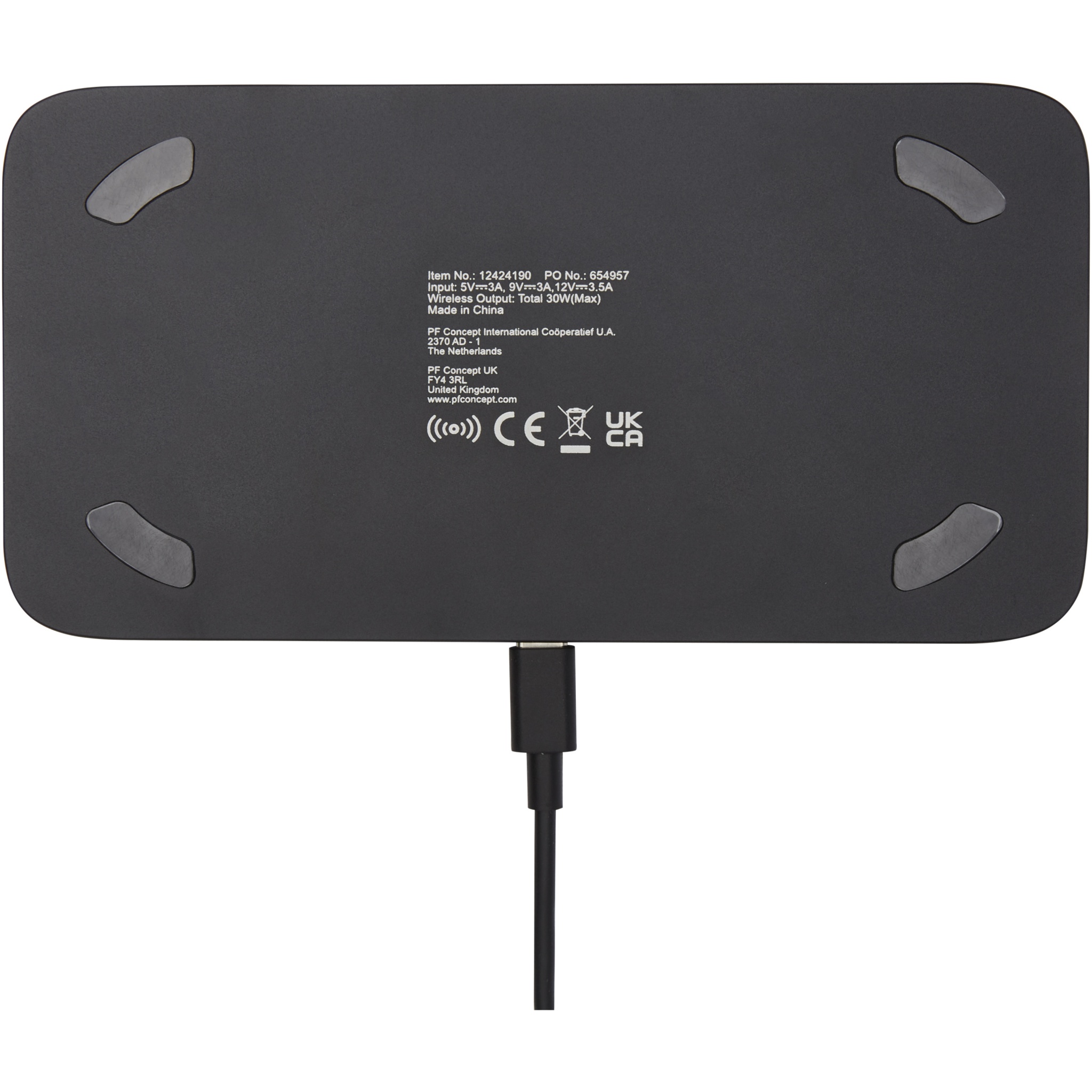 The Hybrid 15W premium dual wireless charging pad is an asset for any office desk. It can easily fit into a laptop bag pockets due to its ultra slim design. Made of durable aluminium housing combined with an anti-slip TPU leather charging pad. With up to 15W wireless charging output, two devices can be fully powered quickly and simultaneously. Compatible with all Qi devices (iPhone 8 or above and Android devices that support wireless charging). Features built-in FOD (Foreign Object Detection) to identify unwanted objects and ensure a smooth charging process. Delivered in a premium kraft paper box with a colourful sticker. Type-C charging cable is included.