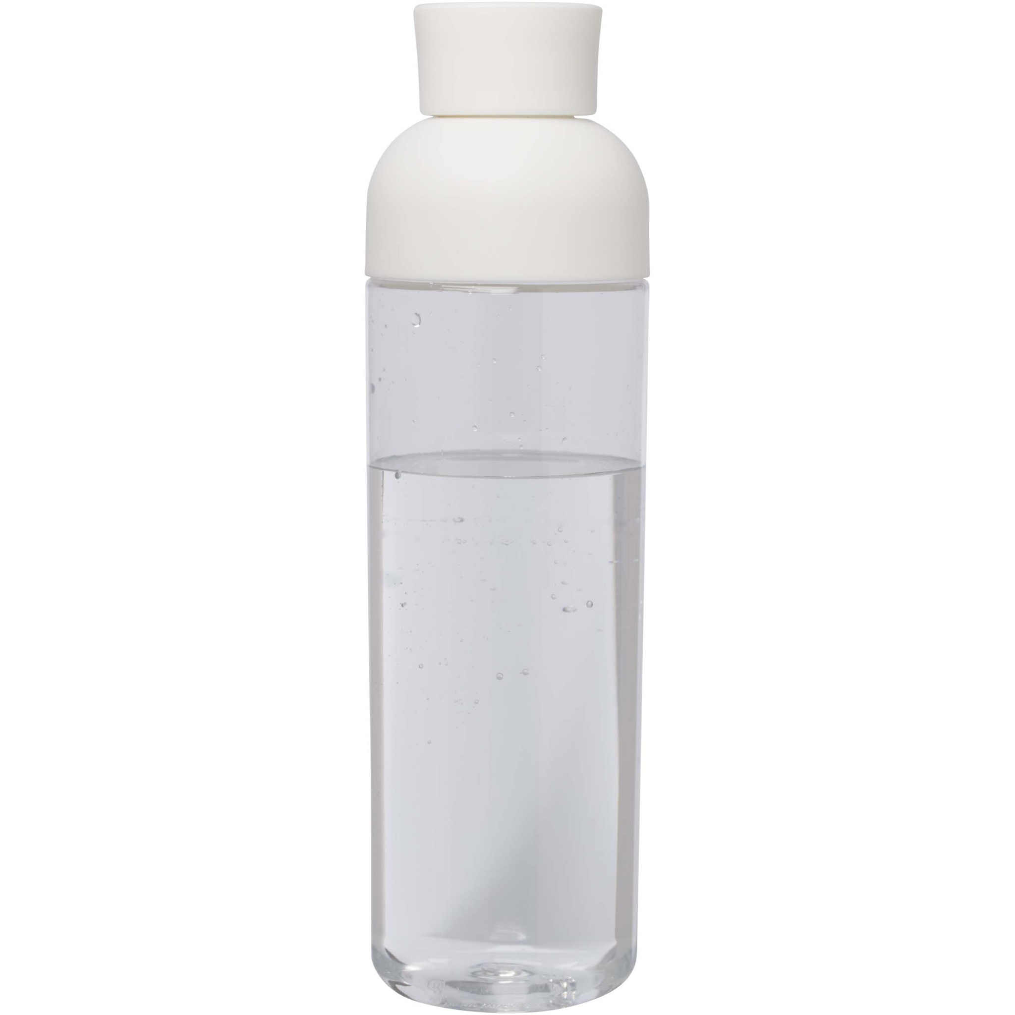 The Illuminate RPET water bottle is made from recycled plastic and features a comfortable silicone handle for easy carrying. Features a volume capacity of 600 ml and is designed to easily fit in the side pocket of a backpack, as well as in most car cup holders. The two-piece construction makes it easy to clean. BPA free.