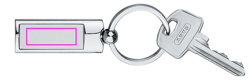 Chic keychain made of matte and shiny metal. We engrave your logo on the matte center piece. Doming possible on request.