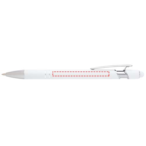 The Kish ballpoint pen with silver finish has a barrel made of recycled aluminium with a touch stylus made of silicone. Recycled aluminium reduces the amount of waste in landfills and helps to conserve natural resources aiming to reduce greenhouse emissions. Ink colour: Black. Writing length: 800 metres. Nib size: 1.0 mm.