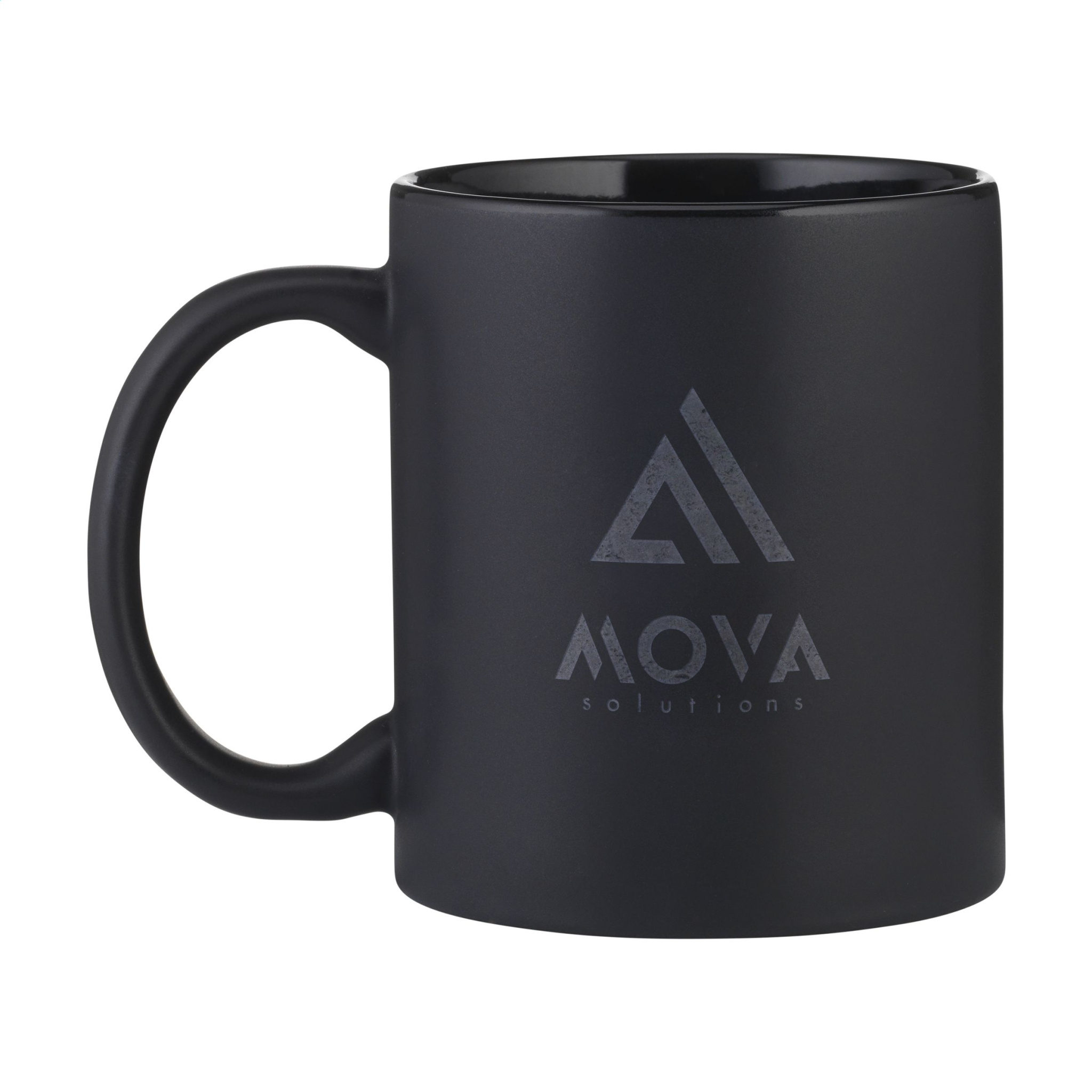 High quality ceramic mug with a matt black exterior and a glossy black interior. Dishwasher safe. The imprint is dishwasher tested and certified: EN 12875-2. Capacity 350 ml.