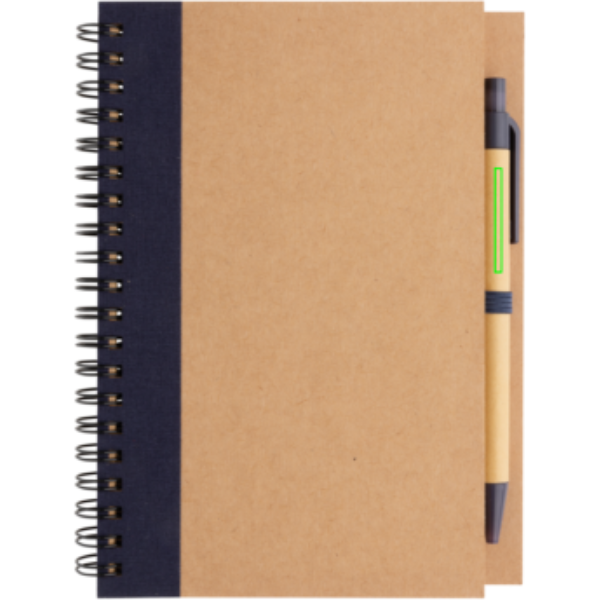 Kraft spiral notebook with pen, blue