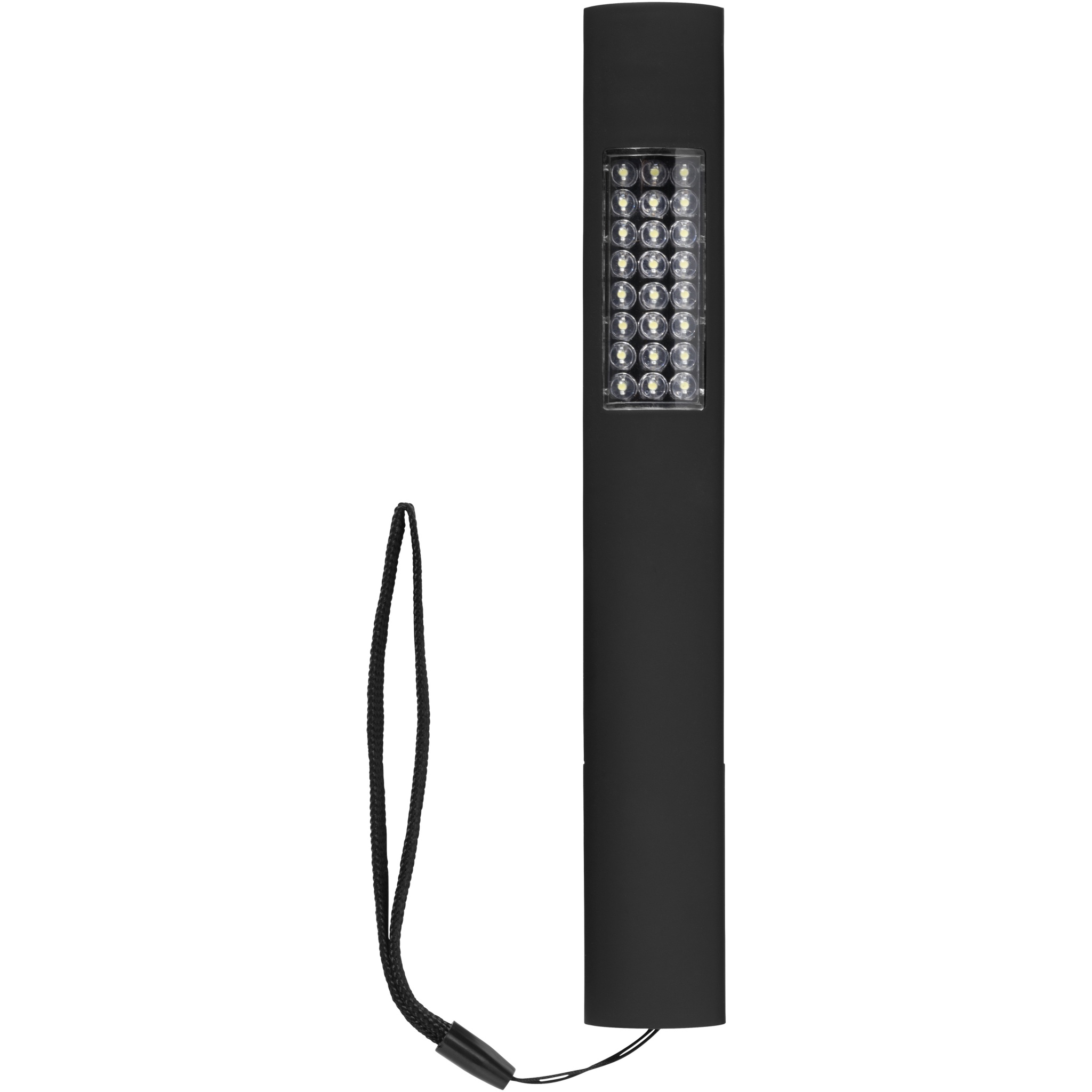 Lutz 28-LED magnetic torch light. Slim and magnetic torch which has three modes. The first mode is a 4 LED flashlight, the second mode is the 24 LED light, and the third mode is both on at once. Magnetic back for easy storage or for placement against metal surfaces when in use. Push button on/off. Nylon carrying strap. Packed in a STAC gift box. Batteries included and inserted. Exclusive design. ABS Plastic.