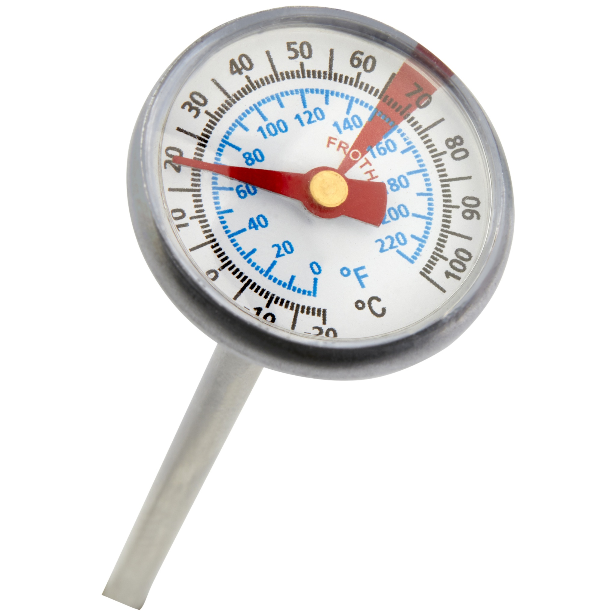 BBQ thermometer with measure ranges in both ℃ and ℉. Mechanical induction can be directly and accurately measured in the oil pan, when frying, or for barbecue temperature control. The durable, stainless-steel casing provides strength and corrosion resistance. Easy to use and easy to clean.