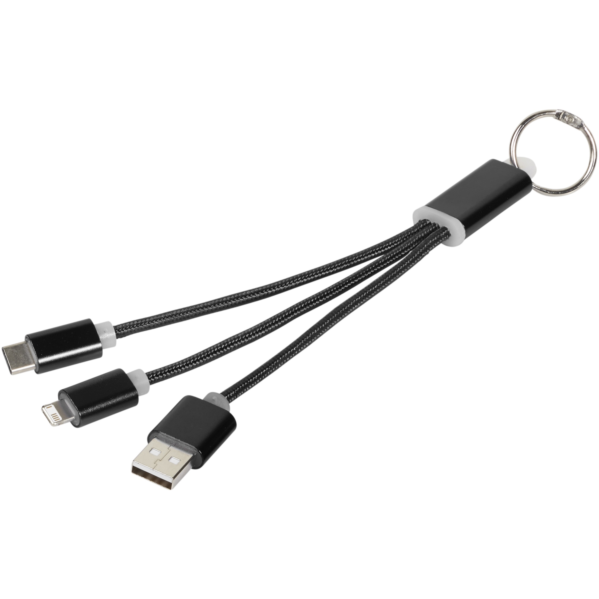 Metal 3-in-1 charging cable with keychain, Solid black