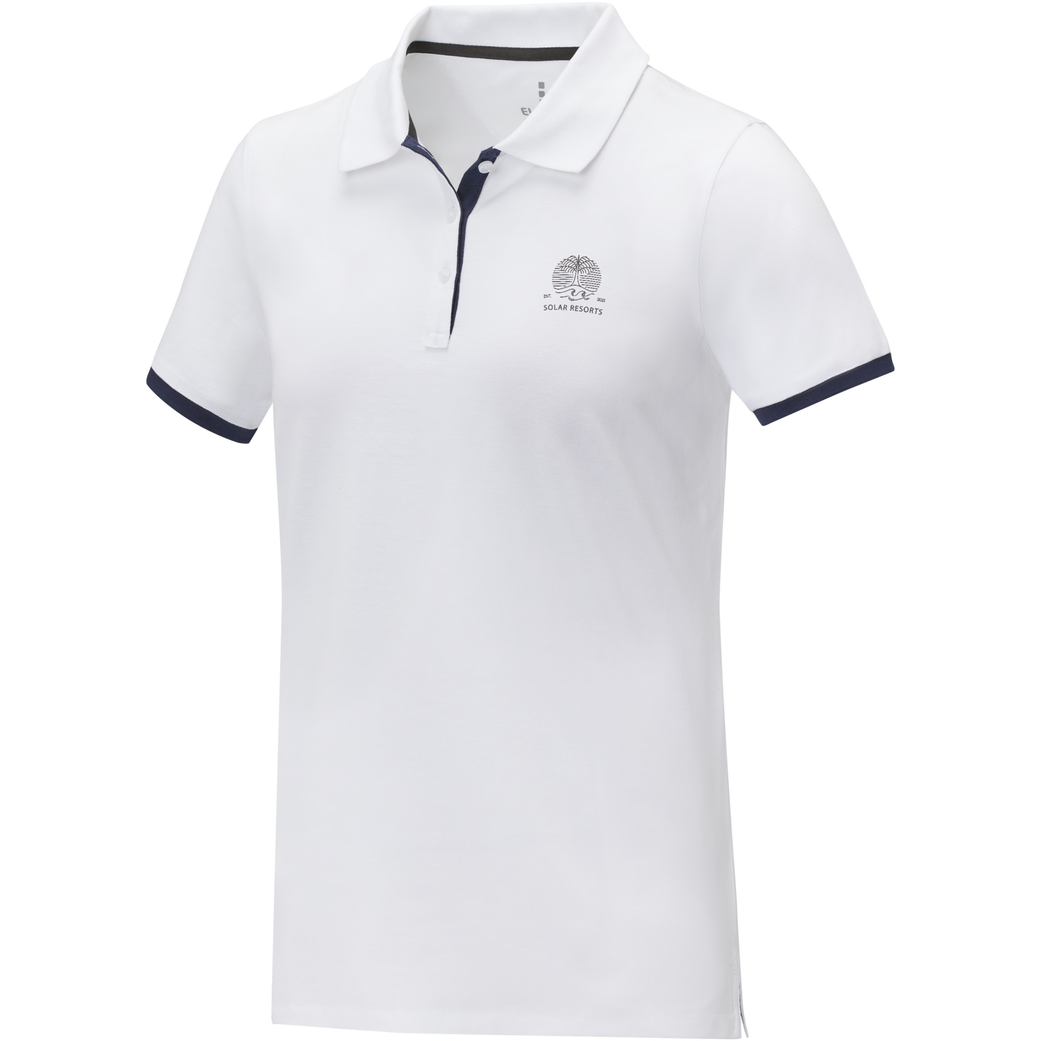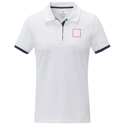 The Morgan short sleeve women's duotone polo is a stylish and comfortable option for any casual or business setting. Made from a 200 g/m² piqué knit cotton fabric, this polo is both durable and breathable. Featuring a flat knit collar and rib cuffs with contrast colour detailing, this polo offers a modern twist on a classic design. The two-button placket and pick-stitch details add an extra touch of sophistication, and the satin neck tape and heat transfer main label provide comfort and ease of wear. This polo is designed with a fitted shape for a feminine look.