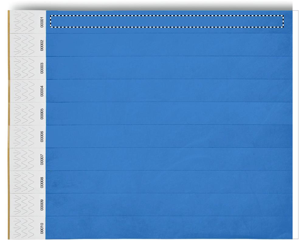 One sheet of 10 event wristbands. DuPont ™ Tyvek® 19mm wide. Including unique numbering on each wristband.