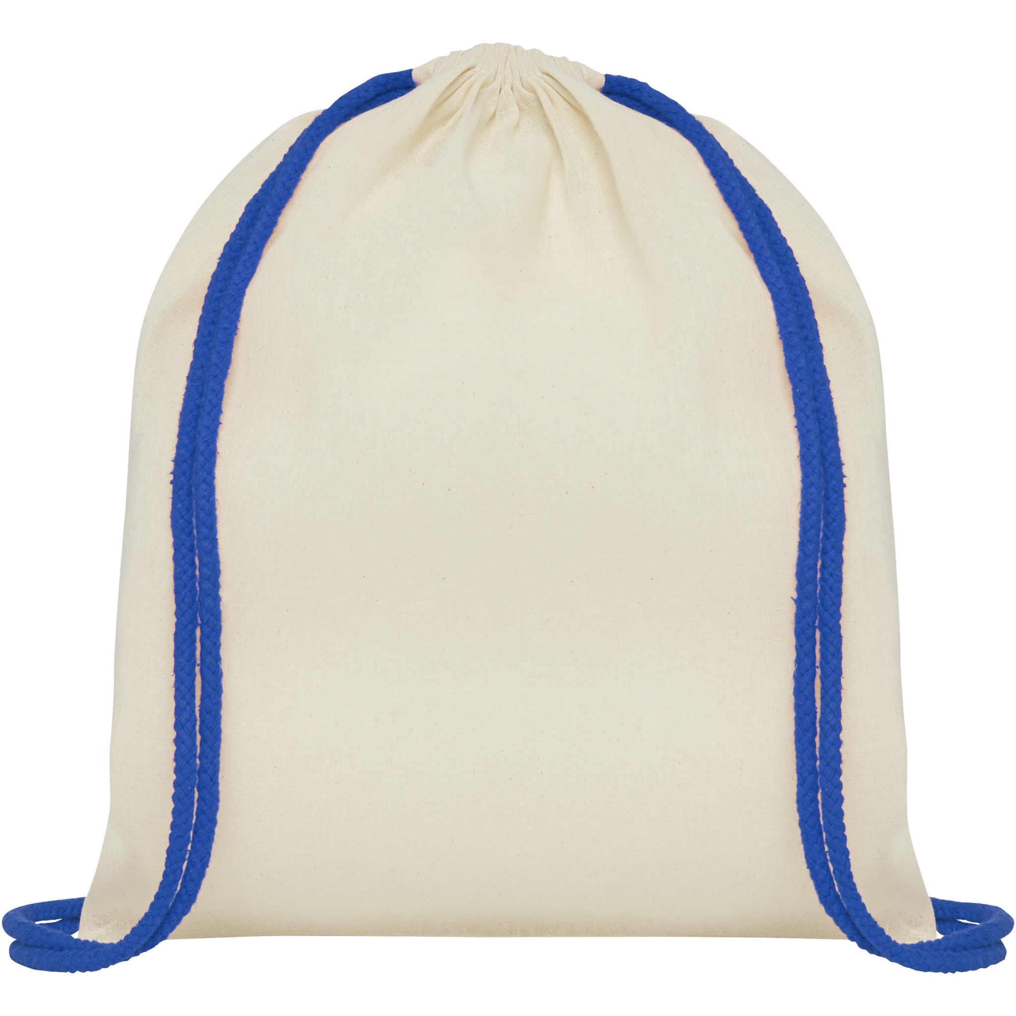 Oregon 100 g/m² cotton drawstring bag with coloured cords 5L, Natural / Royal blue