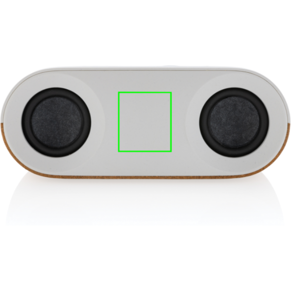10W wireless speaker made with FSC® 100% cork and RCS (Recycled Claim Standard) certified recycled ABS. Total recycled content: 25% based on total item weight. RCS certification ensures a completely certified supply chain of the recycled materials.The speaker is equipped with a 1200 mAh battery to ensure up to 10 hours of playing time and BT5.3 for smooth connection with clear sound. Connection range up to 10 metres. With mic and pick up function to answer calls. Packed in FSC mix FSC® box. Including RCS certified recycled TPE charging cable. Item and accessories 100% PVC free.