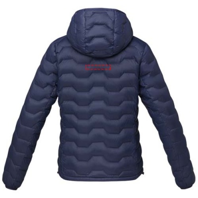 The Petalite women's GRS recycled insulated jacket – a sustainable and stylish outerwear choice for environmentally-conscious adventurers. Crafted with precision and care, this jacket is fully GRS certified, making it a more sustainable addition to your wardrobe. Designed for comfort and warmth, the honeycomb quilted pattern shows a modern design and enhances insulation, while the GRS certified recycled nylon dull cire 380T woven fabric provides durability and weather resistance. Even the trims and accessories, including zippers, are thoughtfully sourced from recycled materials, ensuring every aspect of this jacket contributes to a greener planet. Equipped with practical features, the Petalite jacket has front pockets with zippers and an inside left bottom pocket for secure storage. The inner stormflap with chin guard shields you from the elements, while the elastic drawstring with adjustable cord lock in the bottom hem allows for a customised fit. The elastic binding on the hood ensures added protection against cold winds. The RDS certified recycled feathers provides warmth without compromising on ethical standards. With GRS certification guaranteeing a 100% certified supply chain, this garment truly represents an environmentally conscious choice. This jacket is designed with a fitted shape for a feminine look.