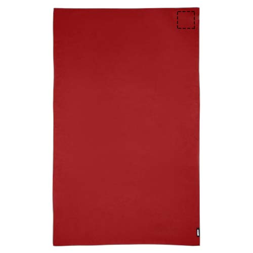 This sport towel absorbs very well, is lightweight and dries quickly. In addition, the fabric is durable and extremely soft. When the towel is folded and secured with the elastic band it's reduced to a small size, making it suitable for bringing to the gym, swimming pool, or for when going backpacking or camping. The towel has a size of 130 x 80 cm and is made from 200 gr/m2 recycled PET polyamide, and can be washed in the washing machine at 40 °C. Delivered with a storage pouch (20 x 8.5 cm) made from recycled PET plastic, which provides a great area for printing a logo.