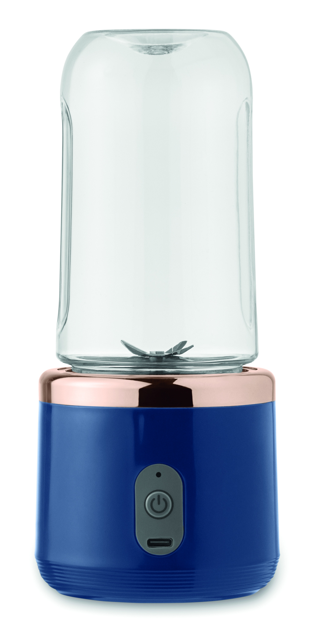 Portable smoothie blender, mixer with 6 leaf blade and 2 removable juice cups in PCTG with strap. USB Rechargeable 1200 mAh battery. Capacity: 400ml (2 x).