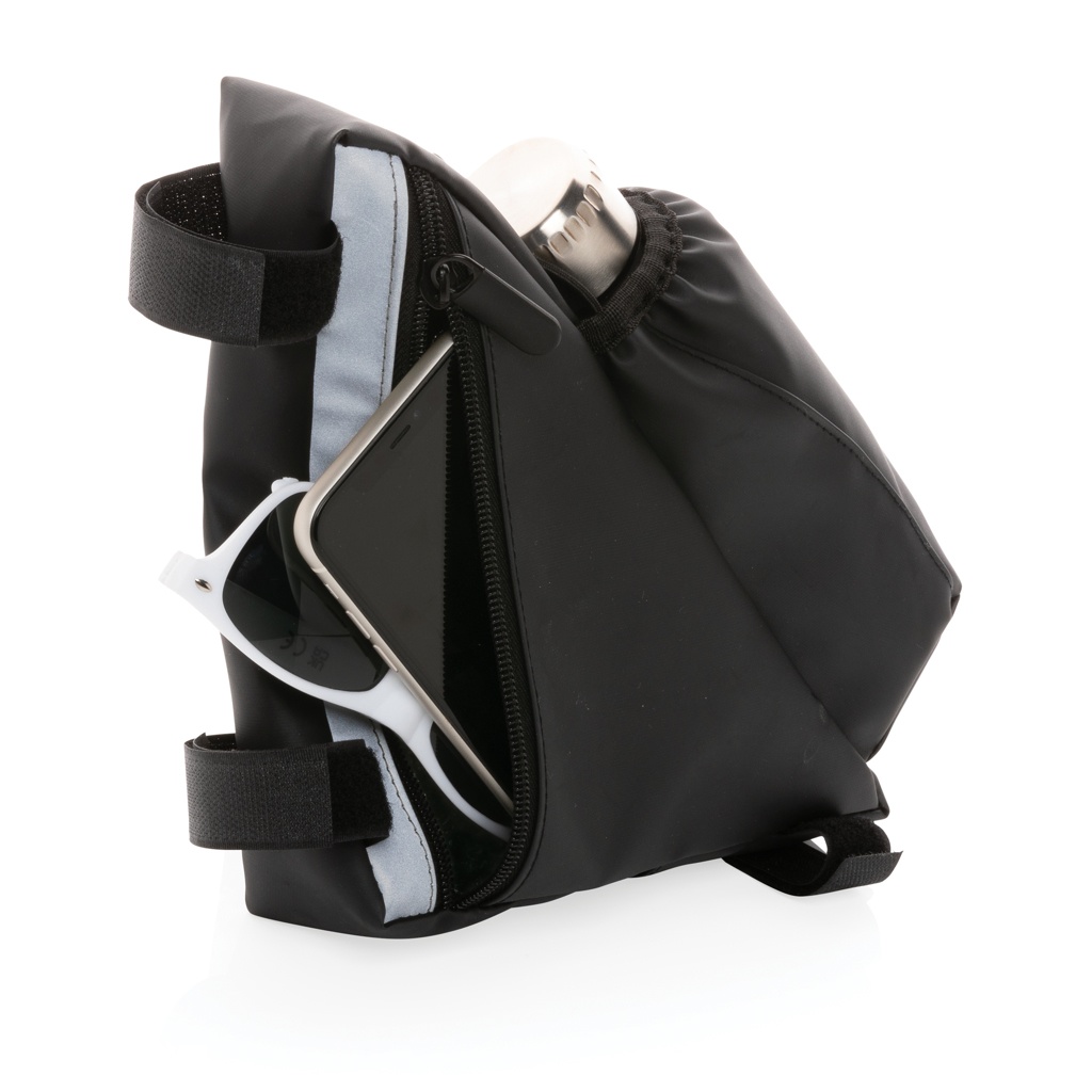 PU high visibility bike frame bag with bottle holder, black