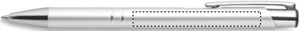 Push button pen in aluminium finish. Black ink.
