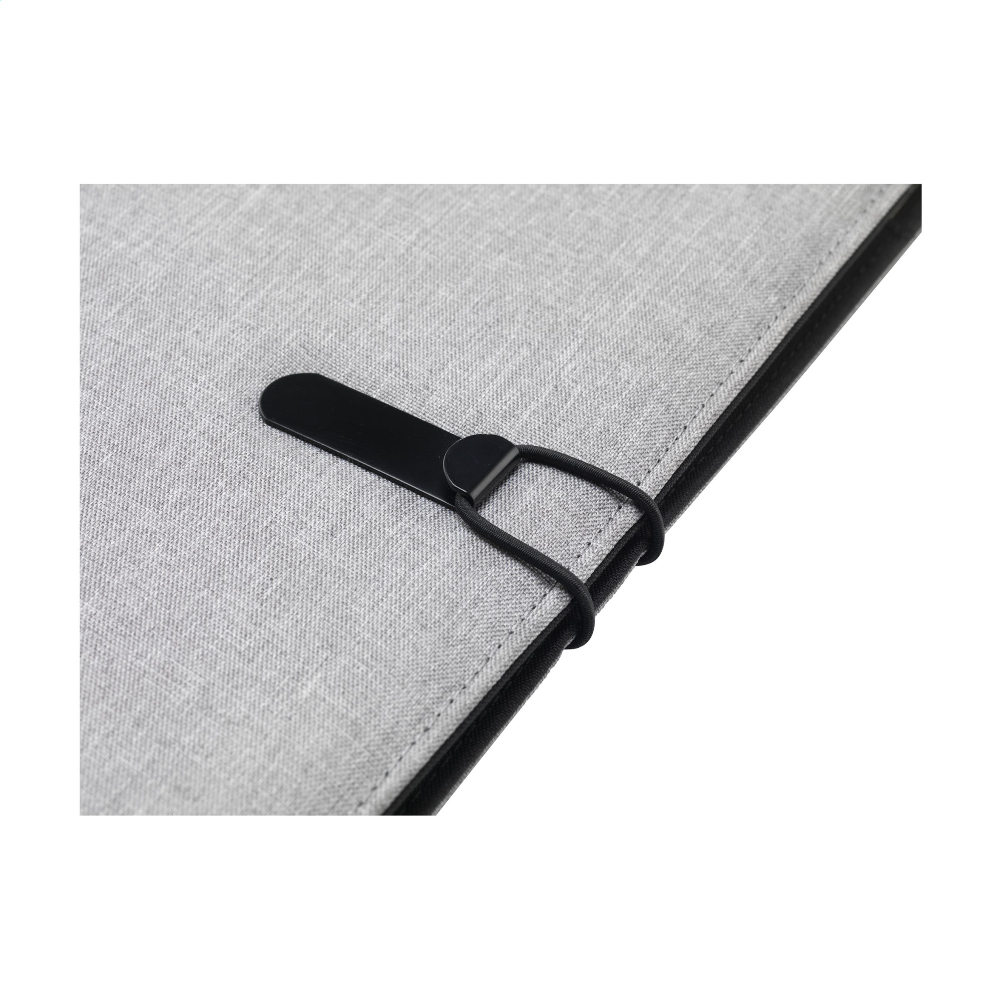 WoW! Modern A4 conference/document made from RPET material. Supplied with a number of handy pockets as well as a separate compartment for storing a mobile phone. A pen loop is also included. The folder includes a writing pad with 20 sheets of FSC® certified, white lined paper (70 g/m²). RCS-certified. Total recycled material: 6%.