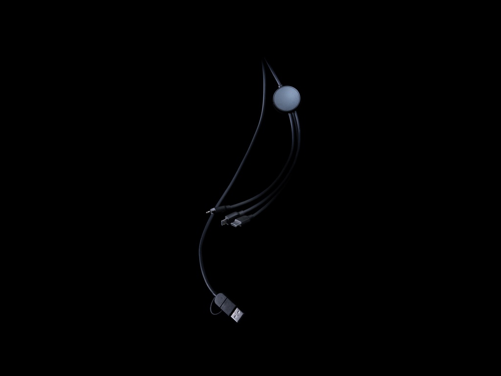6 in 1 charging cable with casing made from 100% RCS standard recycled ABS plastic and 120 cm cable made from 100% recycled TPE. RCS (Recycled Claim Standard) is a standard to verify the recycled content of a product throughout the whole supply chain. Total recycled content: 57% based on total item weight.The cable comes with 5 different connectors: USB C in, USB A in, type C out, IOS out and micro USB out. This allows you to use the cable with type C output devices that are included in the newer generation of phones and macbook computers. The cable also has a USB A output input option so it can charge any device from any output source. 100% PVC free. Packed in FSC® mix packaging.