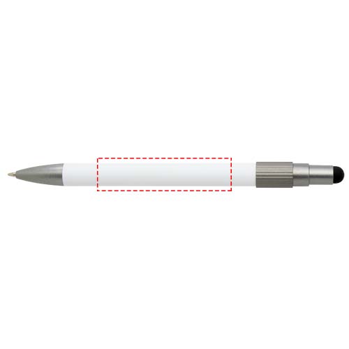Ballpoint pen with stylus and fidget spinner, combining practicality with a playful design. The pen is made from RCS certified recycled aluminium and features a smooth push mechanism and a stylus tip for touchscreen use. A built-in fidget spinner on top adds a stress-relieving touch (just flick to activate). Pen ink colour: black. Writing length: 1000 metres.