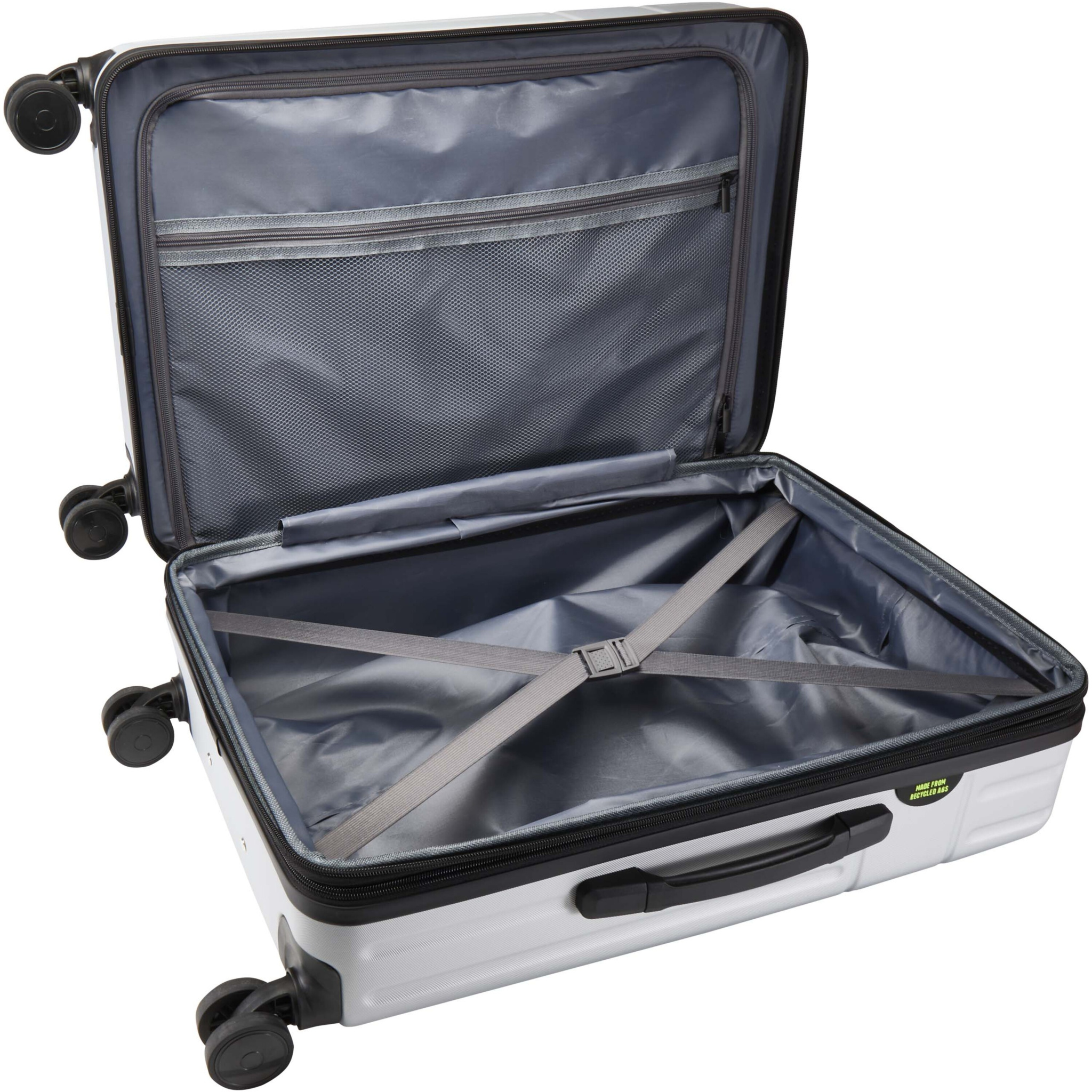 Constructed from impact-resistant recycled plastic with an RPET lining, the Rover 24" expandable trolley is designed for modern explorers who value durability and smart design. Offering a generous 70L capacity with expandable storage for those just-in-case extras, it’s ideal for longer journeys. This GRS certified trolley (including certified printing) features a double-tube aluminium frame and 360-degree 4-wheel spinner system for effortless mobility. An integrated TSA combination lock provides added security, while the easy-grab handle ensures comfort on the move. Inside, compression straps and zipped compartments keep your belongings neatly organised throughout your trip.