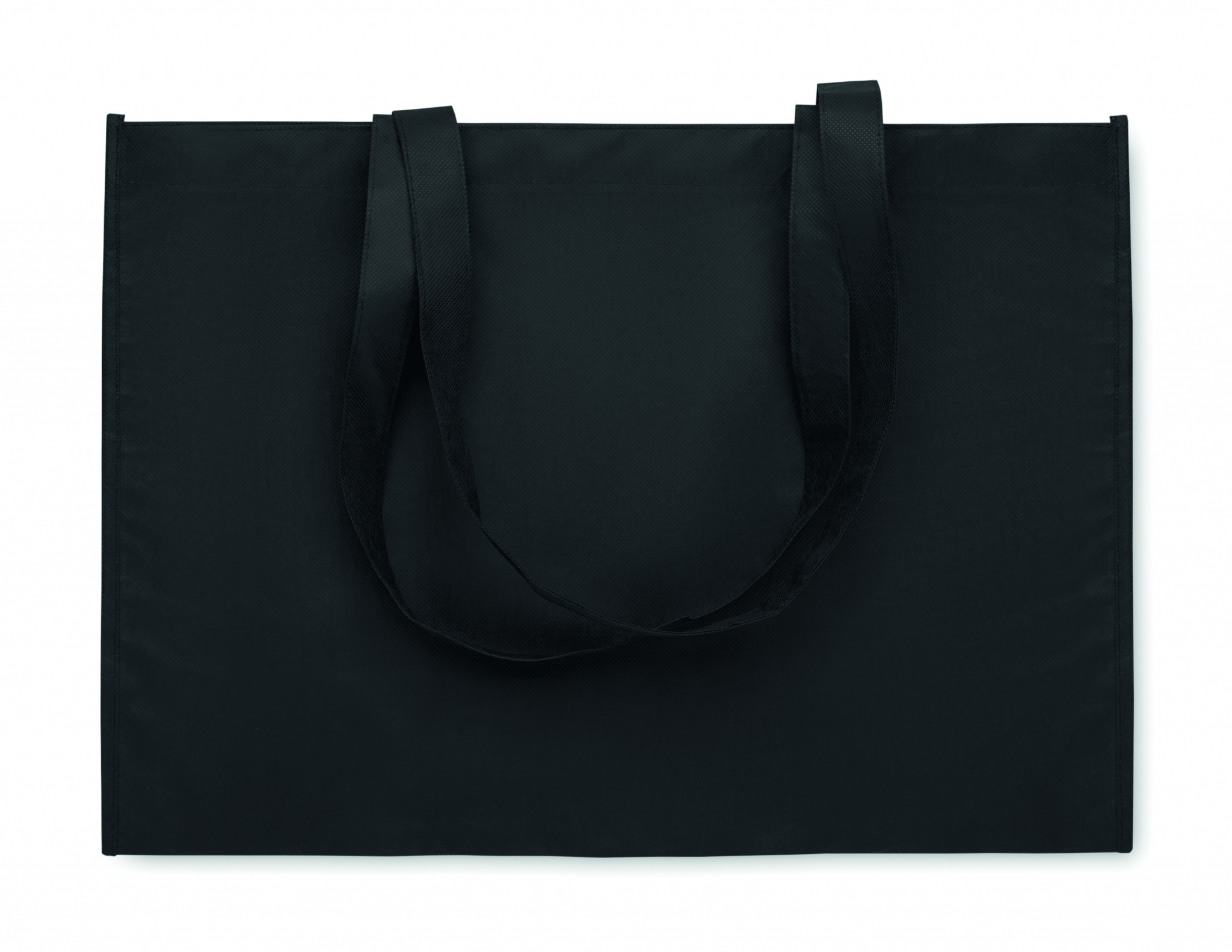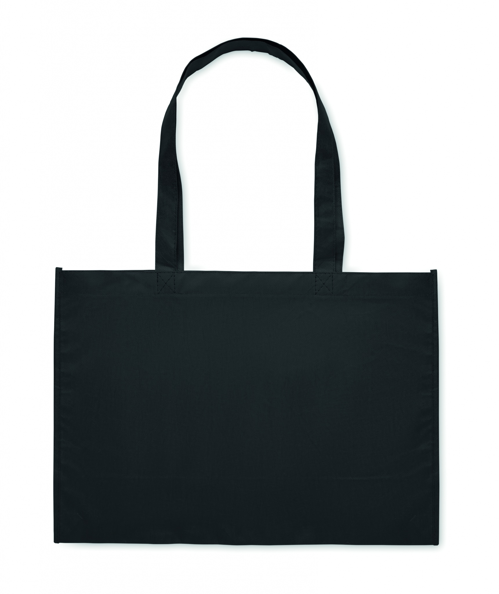 Shopping or beach bag in RPET non-woven with gussets and long handles. 80 gr/m².
