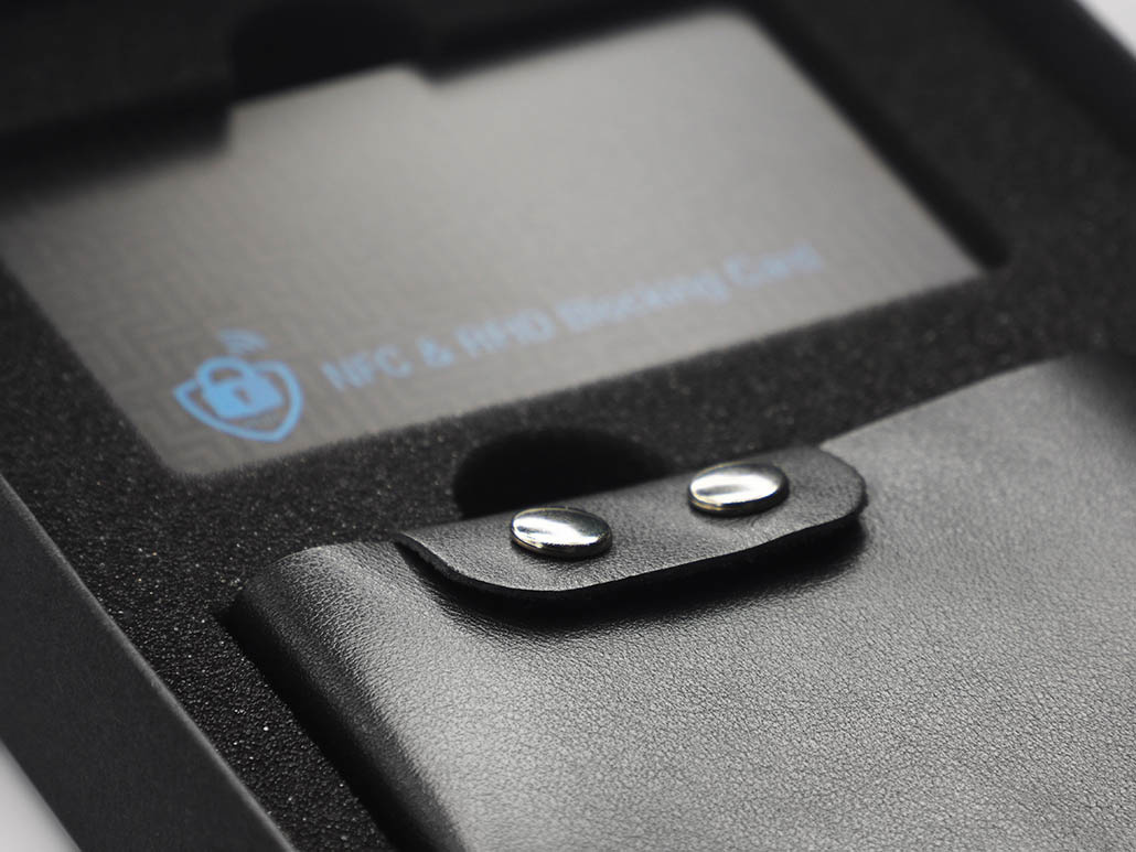 Includes NFC and RFID signal blocking card