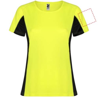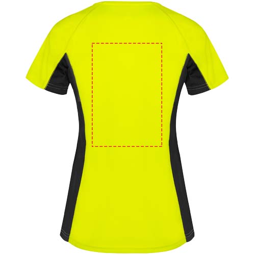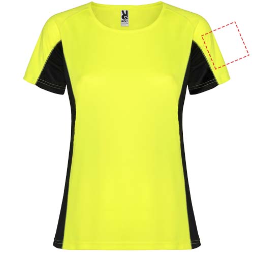 Technical and breathable fabric. A combination of two polyester fabrics: Main fabric in birds eye, side panels and inner sleeve in microperforated fabric. Crew neck with inner reinforced covered seams. Removable label.