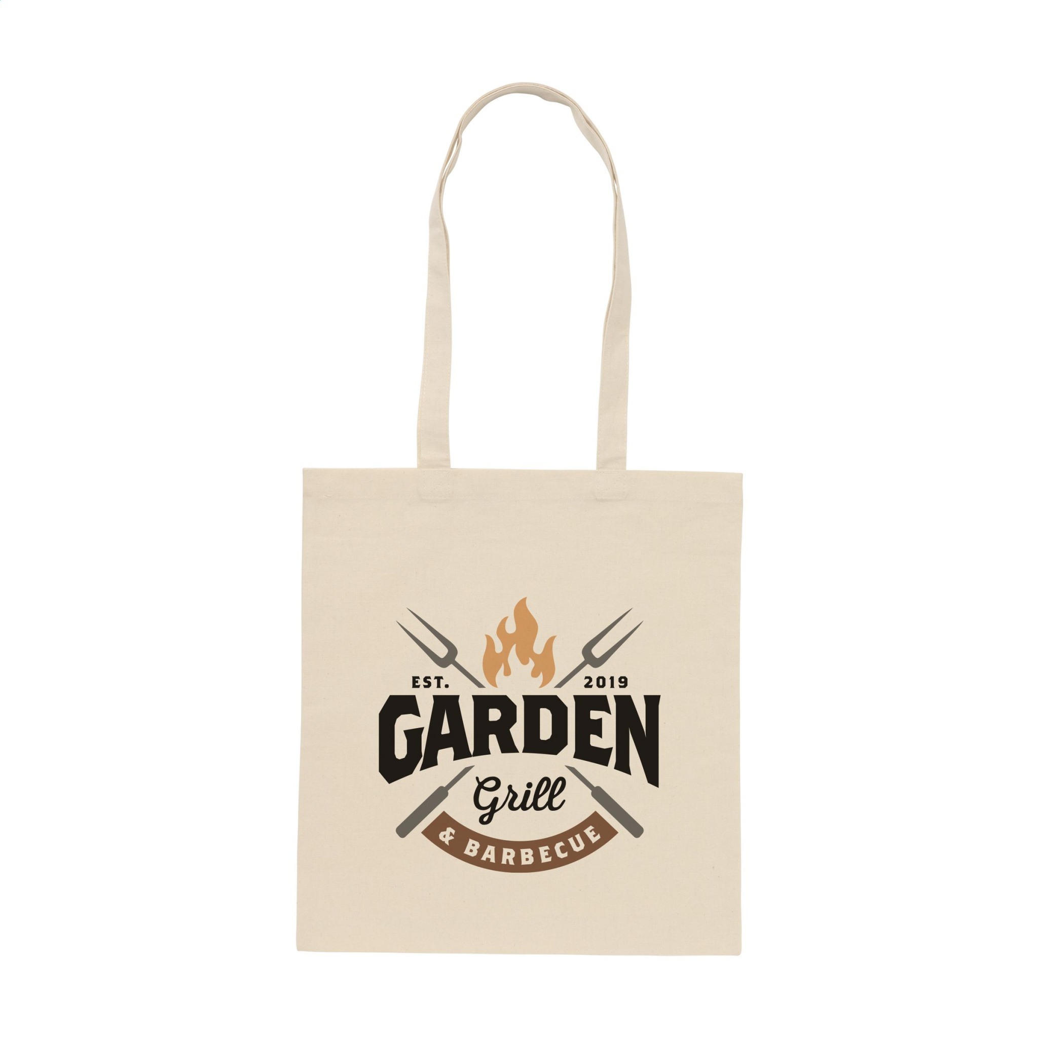 Shopping bag made from sturdy, 100% fastwoven cotton (180 g/m²). With long handles. A high quality, durable bag. Capacity approx. 7 liters.