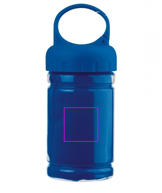 Great companion for sports, cooling towel packed in a plastic bottle with carabiner. We print your logo on the bottle (only 1C feasible).