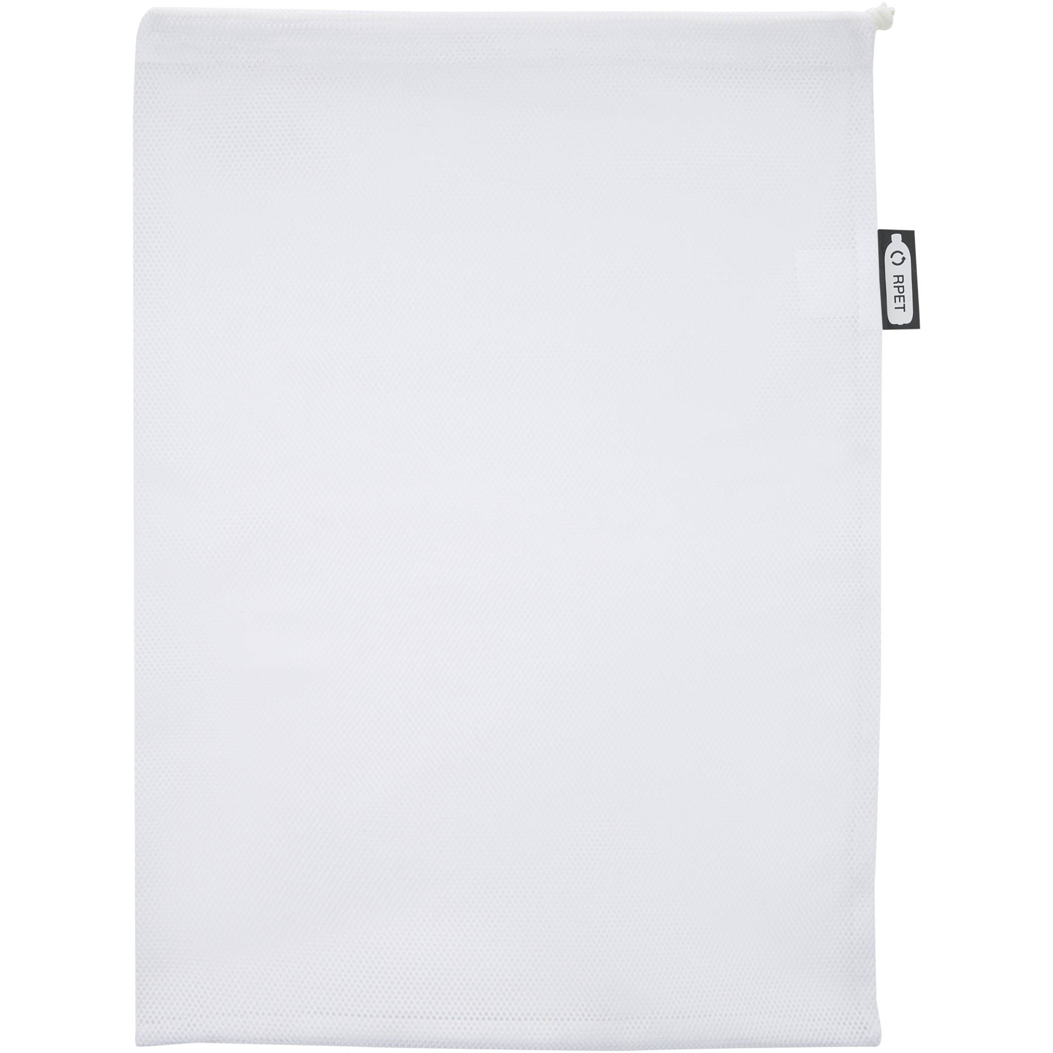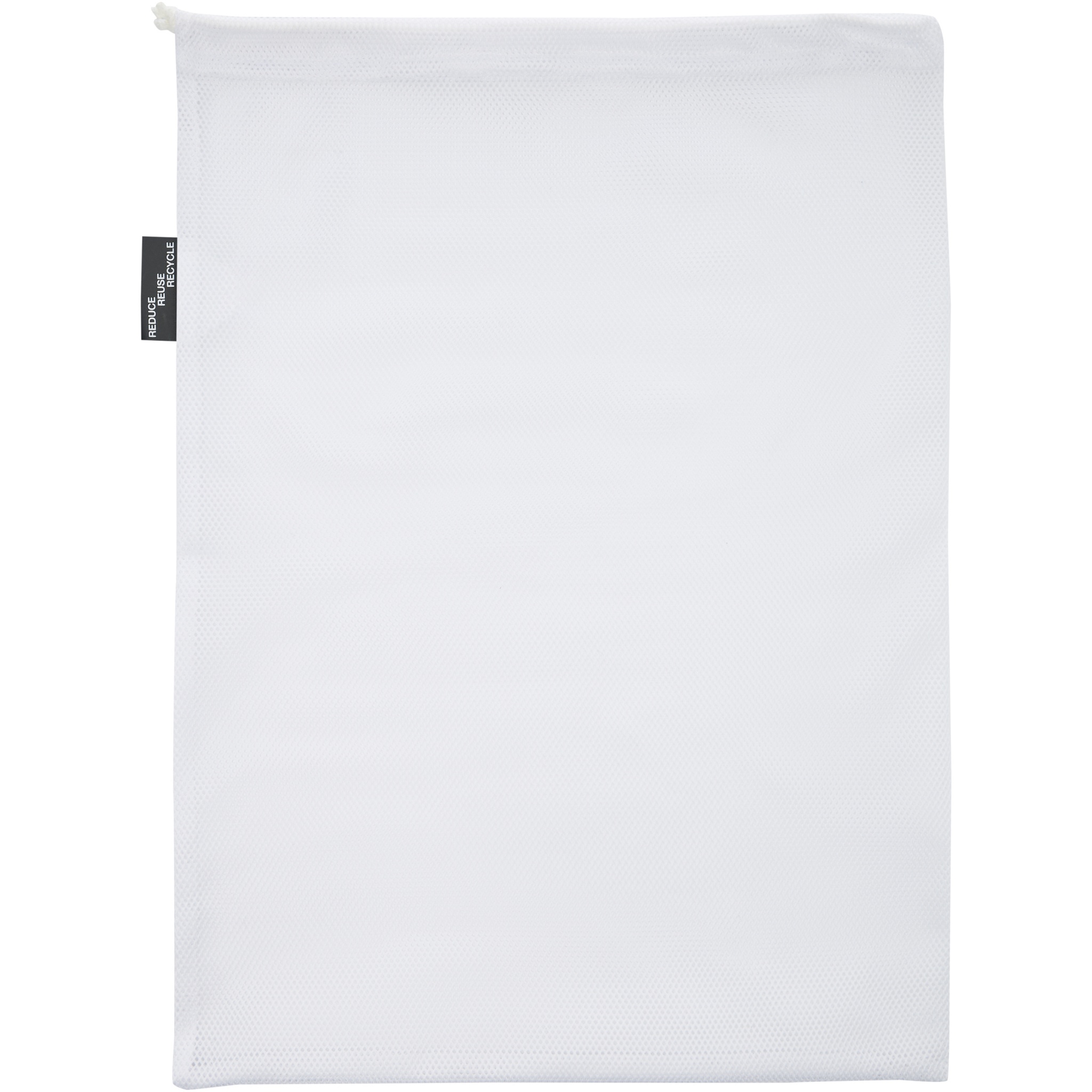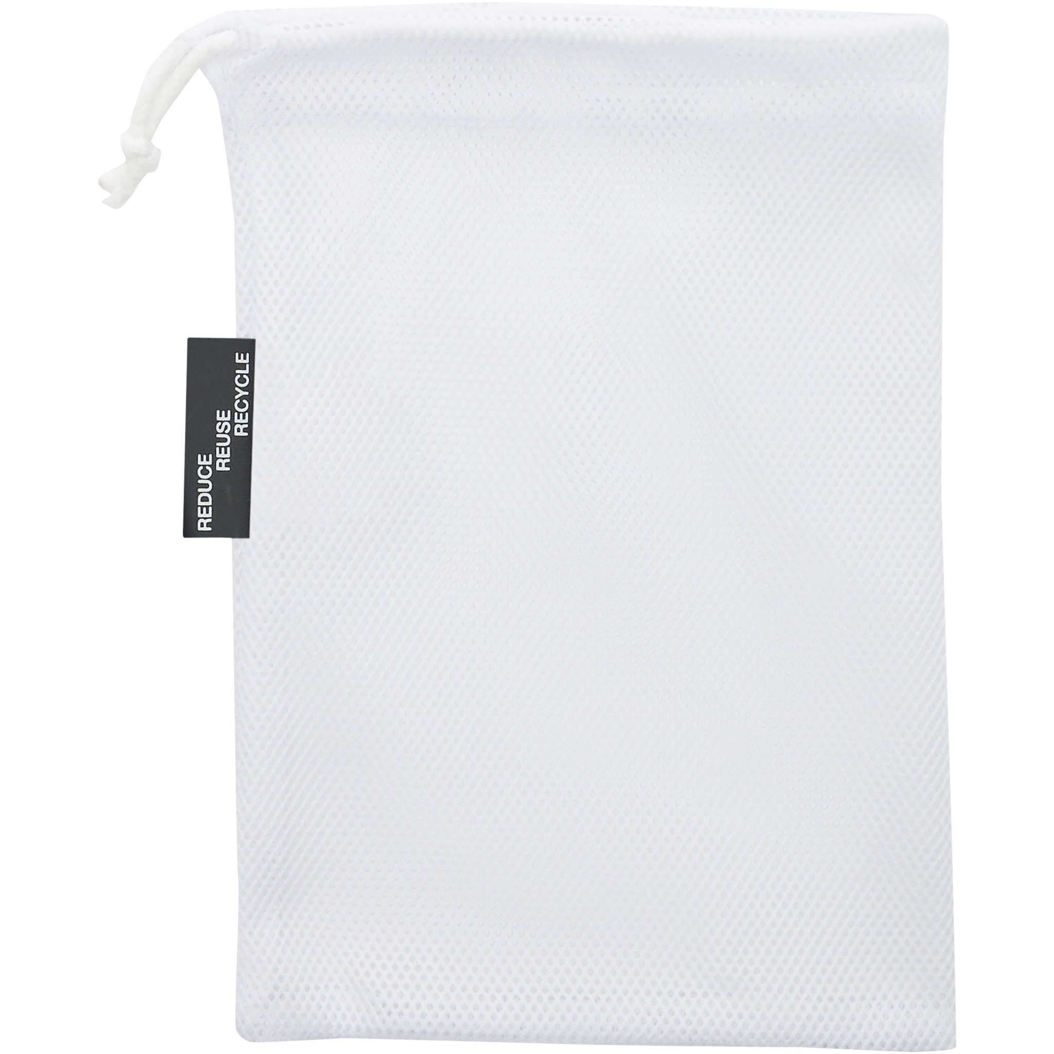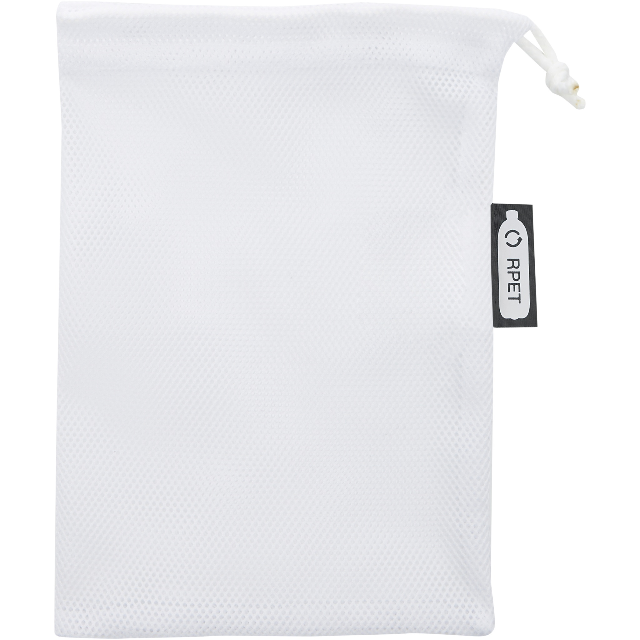 Sublimation sample box including 3 vegetable bags in different sizes (15x21 - 1PL035, 25x32 cm - 1PL036, 30x41 cm - 1PL037), all made from 100% recycled polyester. The box also contains a pair of shoe laces (98x1 cm), a multiscarf (49x23 cm), a cleaning cloth (18x18 cm), a luggage belt (154x4 cm), a lanyard with hook (98x2 cm), 2 lanyards with safety buckle and hook (104x2.5 cm/94x1.5 cm), a keychain (34x1.5 cm), a bracelet with locking slider (32x1.5 cm), and a bracelet with removable locking slider (32x1.5 cm). Made in Europe.