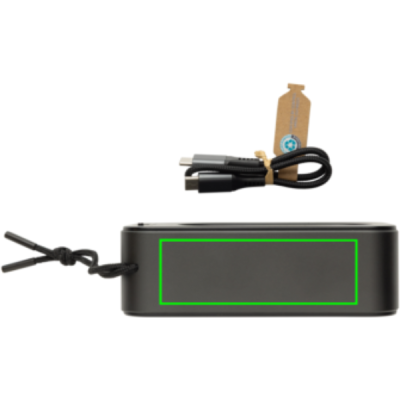 The Swiss Peak RCS Recycled Aluminium 10W Speaker delivers powerful, high-quality audio with deep, resonant bass thanks to its integrated subwoofer and dual 5W speakers. Designed for exceptional sound performance, it features BT 5.3 for seamless connectivity and auto-pairing, ensuring effortless setup with your devices. With a 1200mAh polymer Li-ion battery, the speaker provides up to 5 hours of playtime at 50% volume and fully recharges in just 2.5 hours via the included USB-C to USB-C cable. Additional features include a USB-C port and AUX port. The speaker is made from RCS certified recycled aluminum. RCS (Recycled Claim Standard) is a standard to verify the recycled content of a product throughout the whole supply chain. Total recycled content: 40 % based on total item weight. This speaker is PVC-free and packaged in an FSC-certified gift box. With carry strap made from RPET.