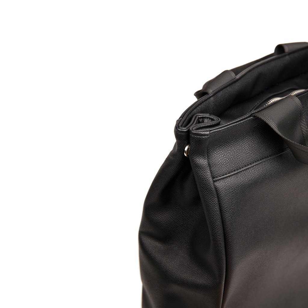 Effortlessly transition from the office to on-the-go with our understated and exclusive backpack. Sleek design and exclusive look. Features a padded computer compartment for added protection. Can be carried as a tote or as a backpack, making it versatile and convenient for any situation. The exterior of the backpack is made from recycled PU and the inside lining is made from recycled materials. Certified by RCS (Recycled Claim Standard), RSC certification guarantees that the entire supply chain of the recycled materials is certified. The total recycled content is based on the overall product weight. This product contains 27% RCS-certified recycled polyester and 8% RCS-certified recycled PU.Suitable for computers with an overall size of 17 inches. Please note that the dimensions of the display are not the same as the dimensions of the entire computer.