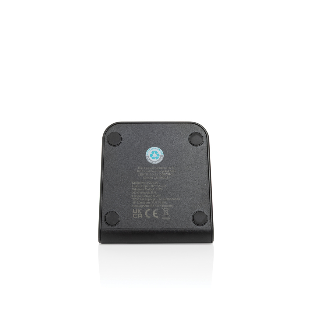 Logo trade advertising product photo of: VoltPerch RCS recycled plastic 15W magnetic wireless charger