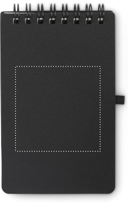 Water repellent notepad in PP cover with pen. Twin-wire. Mineral paper 120 gr/m², 50 sheets lined. Blue ink. Elastic closure strap and pen holder.