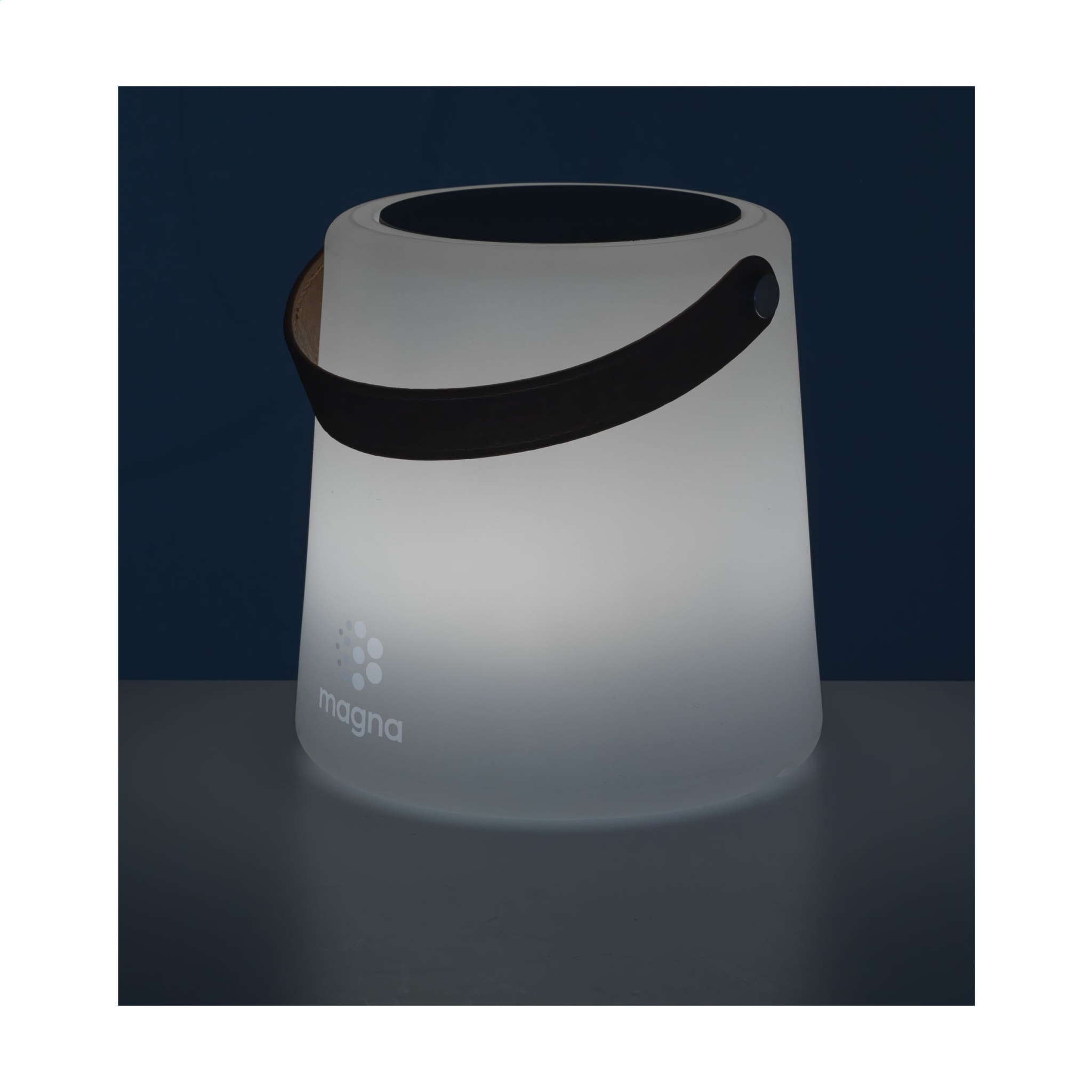 Rechargeable solar lamp from the Wooosh brand. This lamp is equipped with an integrated solar panel on the top of the lamp and a sturdy, imitation leather handle. The milky white plastic shade dampens the LED lamp slightly, emitting a soft, warm light. With its simple design this modern, cordless lamp is easy to move and so can be used in any environment, both indoors and outdoors. This lamp is charged by sunlight. If the panel has not received enough energy, the lamp can be charged with the included USB-C charging cable. It can also be controlled from a distance with the included remote control. A beautiful eye-catching lamp for atmospheric moments indoors and outdoors. Includes a rechargeable battery (800 mAh) and a user manual. Each item is supplied in an individual brown cardboard box.