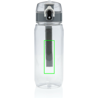 This RCS RPET water bottle is leakproof and features a lockable and one hand operation lid. It also features a handle for easy carrying. The body of the bottle is made from 100% RCS certified RPET. RCS certification ensures a completely certified supply chain of the recycled materials. Hand wash only. This product is for cold drinks only. Total recycled content: 73% based on total item weight. BPA free. Capacity 600ml. Including FSC®-certified kraft gift packaging.