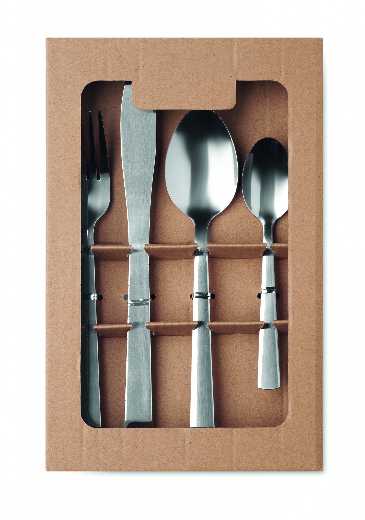16-osaline roostevabast terasest söögiriistade komplekt 4 lauakomplekti jaoks. Sealhulgas: teelusikas, supilusikas, kahvel, nuga. Esitatakse jõupaberikarbis.