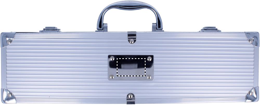 Alumiiniumist kohvris on 3 roostevabast terasest BBQ tööriista. Plaat logo jäljendamiseks.