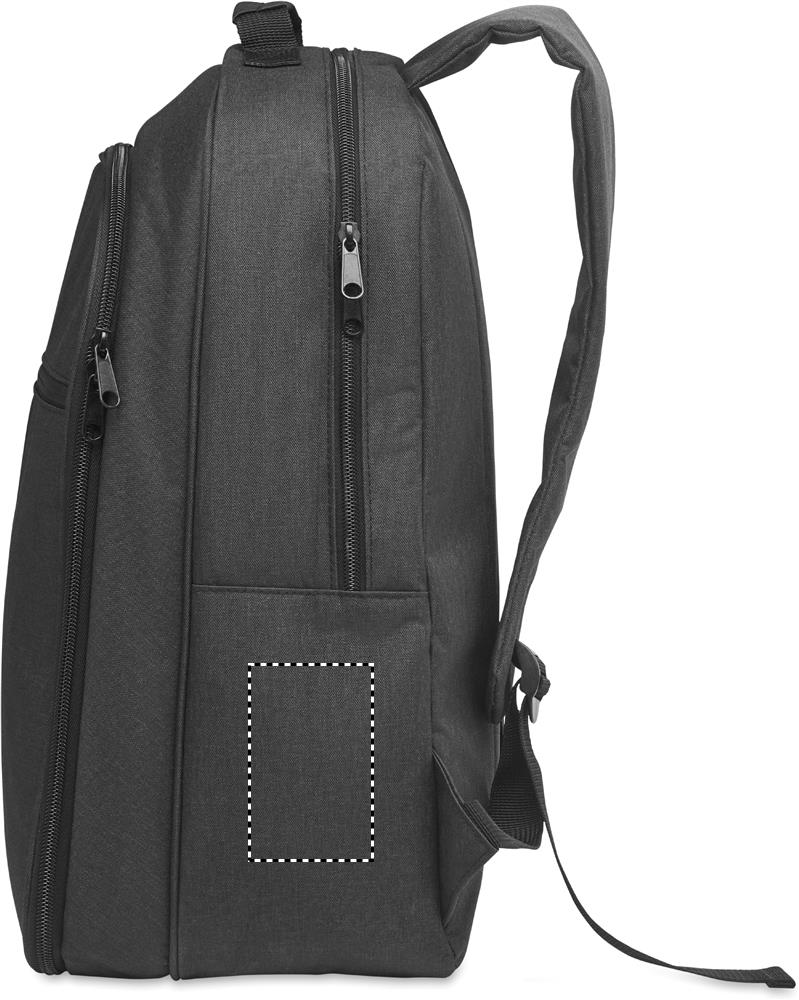 300D RPET jahutusseljakott 15-tollise sülearvuti sahtliga. Ees lukuga tasku ja üks külgmine võrksahtel.