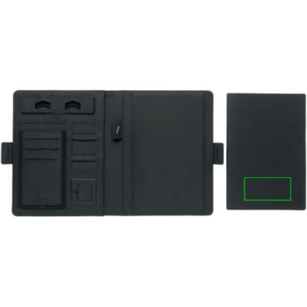 Sellel eemaldatava sülearvutiga sülearvutikaanel (128 joonitud lehekülge 80 g/m²) on uusim tehnoloogia. Esikaanel on juhtmevaba laadimisalus teie telefoni jaoks. (Androidi uusimad põlvkonnad, iPhone 8 ja uuemad). Vanemaid telefone ja tahvelarvuteid saab laadida USB-portide kaudu 4000 mAh akupangast. Unikaalsed USB-pordid avanevad ühe nupuvajutusega. Sisend: 5.0V/1.0A. Väljund: 5,0V/2,1A. Juhtmeta väljund: 5W. Registreeritud disain®