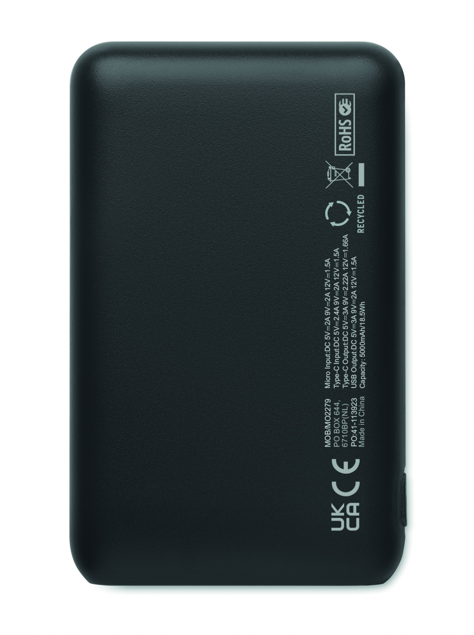 Akupank 5000 mAh taaskasutatud ABS-st. Mahutavus nutitelefoni kasutamiseks, väljund: 1 x Type-C, 2 x Type-A ja 1 x Type-B. Sisend: 2-in-1 Type C & Type-A.